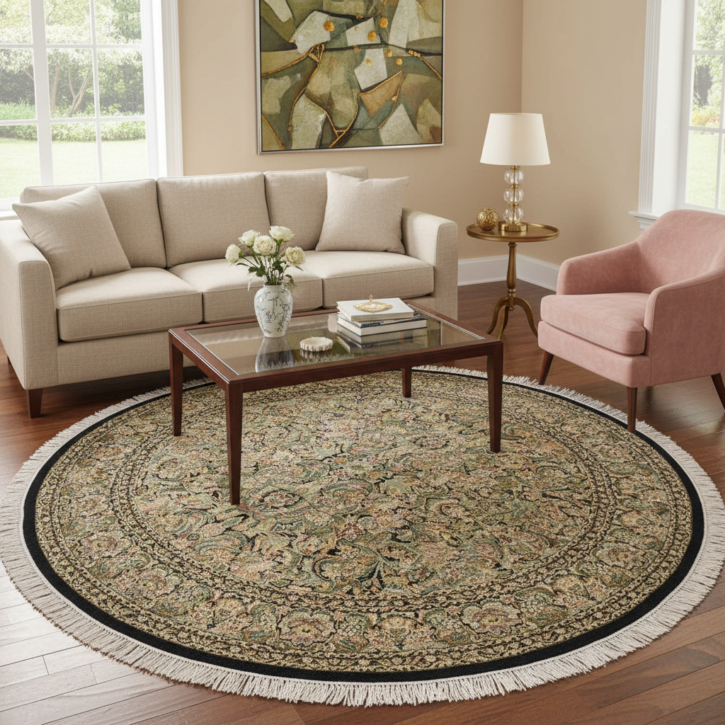Rug Size: 7'11''X8'0''Material: WoolStyle: Persian, Oriental, Renaissance, Art NouveauColors: Black Grey Green GoldWeave Type: Hand Knotted, HandmadePile Height: 0.25 - 0.50 inch