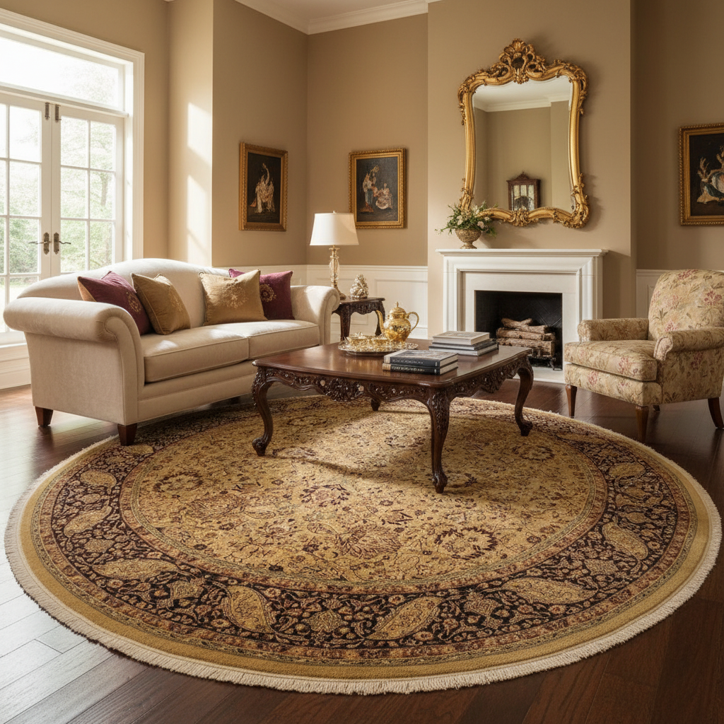Rug Size: 7'11''X8'0''Material: WoolStyle: Antique, Oriental, PersianColors: Gold Red Tan GreenWeave Type: Hand Knotted, HandmadePile Height: 0.25 - 0.50 inch