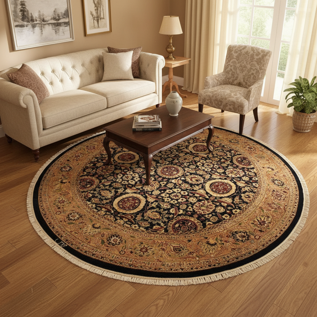 Rug Size: 7'11''X7'11''Material: WoolStyle: Antique, Oriental, PersianColors: Blue Tan Green RedWeave Type: Hand Knotted, HandmadePile Height: 0.25 - 0.50 inch