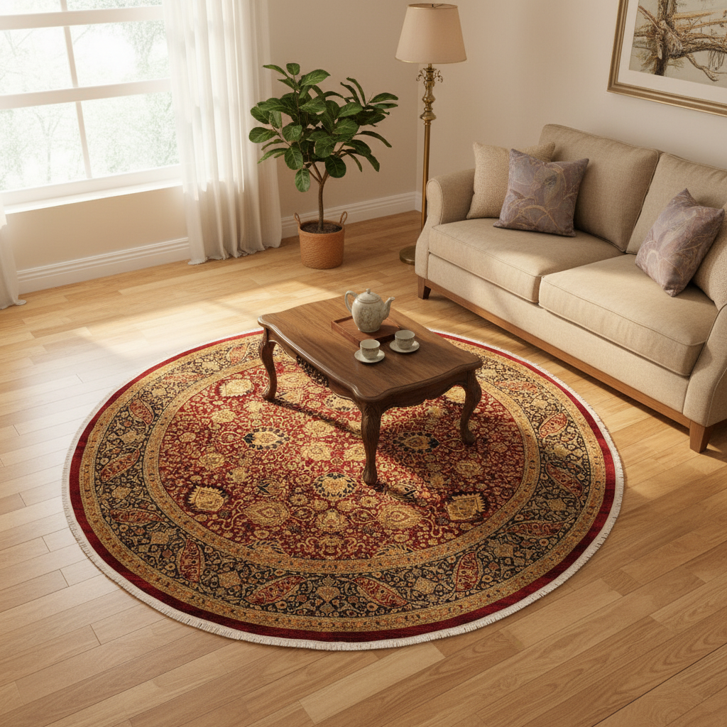 Rug Size: 11'10''X11'11''Material: WoolStyle: Antique, Oriental, PersianColors: Red Blue Brown TanWeave Type: Hand Knotted, HandmadePile Height: 0.25 - 0.50 inch