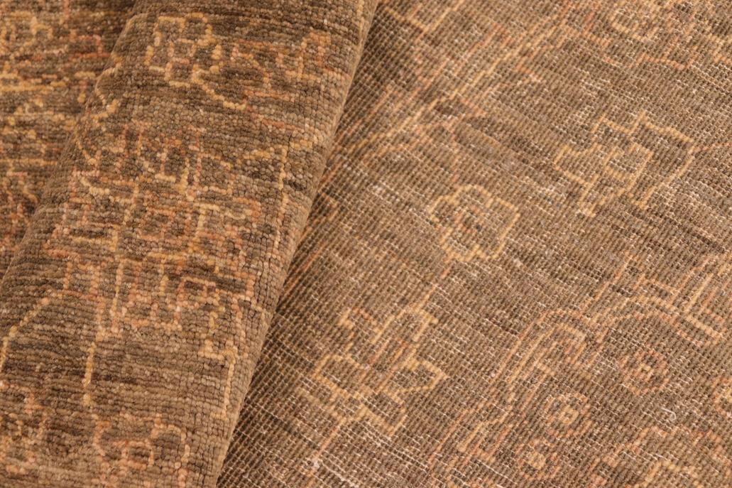 Enhance the ambiance of your home with this magnificent Persian-influenced Turkish hand-knotted rug made by skilled artisans capable of creating the most exceptional vegetable dyes and hand-spun wool. This exquisite handmade rug is a one-of-a-kind Peshawar Kafkaz, otherwise identified as Chobi, Chobi Peshawar, Oushak, or Ziegler rug. These handmade rugs are crafted in Pakistan utilizing superior-quality wool imported from Australia, New Zealand, and Korea in two types of weaves: the Persian weave and the Mori weave. This rug is meticulously crafted by hand using the finest natural vegetable dyes extracted from local plants. The artisans use a blend of hand-spun local and fine merino wool, resulting in a rug with a compelling texture, higher lanolin content, and longer staple. The artisans occasionally incorporate natural or artificial silk into the pile to enhance specific motifs. The finished product is an awe-inspiring flawless design execution and an understated palette that exudes elegance. Contemporary Peshawar rugs draw inspiration from antique Persian designs and feature modern design motifs with vibrant color tones. Hand-knotted with all-natural dyes, resulting in a unique abrash effect and subtle color variations in the pile. Peshawar rugs are known for their stunning and vibrant colors, which were achieved through a process inspired by antique methods. The rug's pile is meticulously trimmed to a moderate thickness and then stone-washed and sun-dried, resulting in a natural sheen and pleasing color tones. Transform the ambiance of your room into a luxurious haven with this gorgeous rug featuring a beautiful color palette. This stunning rug features an intricate oriental design that showcases royalty and seamlessly complements any decor. Its hand-knotted construction and natural fibers provide a soft and comfortable feel underfoot, making it the perfect addition to any room.