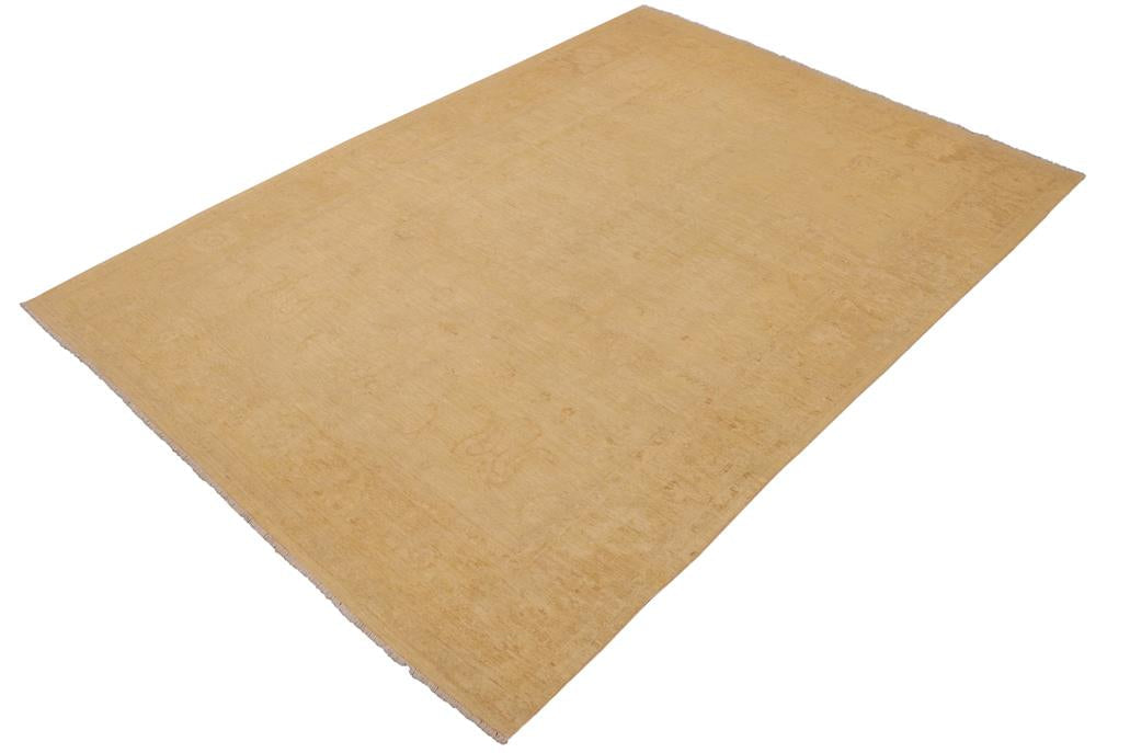 Enhance the ambiance of your home with this magnificent Persian-influenced Turkish hand-knotted rug made by skilled artisans capable of creating the most exceptional vegetable dyes and hand-spun wool. This exquisite handmade rug is a one-of-a-kind Peshawar Kafkaz, otherwise identified as Chobi, Chobi Peshawar, Oushak, or Ziegler rug. These handmade rugs are crafted in Pakistan utilizing superior-quality wool imported from Australia, New Zealand, and Korea in two types of weaves: the Persian weave and the Mori weave. This rug is meticulously crafted by hand using the finest natural vegetable dyes extracted from local plants. The artisans use a blend of hand-spun local and fine merino wool, resulting in a rug with a compelling texture, higher lanolin content, and longer staple. The artisans occasionally incorporate natural or artificial silk into the pile to enhance specific motifs. The finished product is an awe-inspiring flawless design execution and an understated palette that exudes elegance. Contemporary Peshawar rugs draw inspiration from antique Persian designs and feature modern design motifs with vibrant color tones. Hand-knotted with all-natural dyes, resulting in a unique abrash effect and subtle color variations in the pile. Peshawar rugs are known for their stunning and vibrant colors, which were achieved through a process inspired by antique methods. The rug's pile is meticulously trimmed to a moderate thickness and then stone-washed and sun-dried, resulting in a natural sheen and pleasing color tones. Transform the ambiance of your room into a luxurious haven with this gorgeous rug featuring a beautiful color palette. This stunning rug features an intricate oriental design that showcases royalty and seamlessly complements any decor. Its hand-knotted construction and natural fibers provide a soft and comfortable feel underfoot, making it the perfect addition to any room.