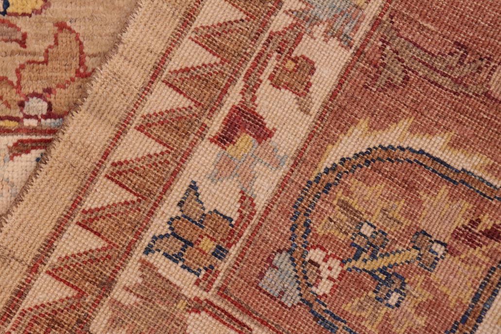 Enhance the ambiance of your home with this magnificent Persian-influenced Turkish hand-knotted rug made by skilled artisans capable of creating the most exceptional vegetable dyes and hand-spun wool. This exquisite handmade rug is a one-of-a-kind Peshawar Kafkaz, otherwise identified as Chobi, Chobi Peshawar, Oushak, or Ziegler rug. These handmade rugs are crafted in Pakistan utilizing superior-quality wool imported from Australia, New Zealand, and Korea in two types of weaves: the Persian weave and the Mori weave. This rug is meticulously crafted by hand using the finest natural vegetable dyes extracted from local plants. The artisans use a blend of hand-spun local and fine merino wool, resulting in a rug with a compelling texture, higher lanolin content, and longer staple. The artisans occasionally incorporate natural or artificial silk into the pile to enhance specific motifs. The finished product is an awe-inspiring flawless design execution and an understated palette that exudes elegance. Contemporary Peshawar rugs draw inspiration from antique Persian designs and feature modern design motifs with vibrant color tones. Hand-knotted with all-natural dyes, resulting in a unique abrash effect and subtle color variations in the pile. Peshawar rugs are known for their stunning and vibrant colors, which were achieved through a process inspired by antique methods. The rug's pile is meticulously trimmed to a moderate thickness and then stone-washed and sun-dried, resulting in a natural sheen and pleasing color tones. Transform the ambiance of your room into a luxurious haven with this gorgeous rug featuring a beautiful color palette. This stunning rug features an intricate oriental design that showcases royalty and seamlessly complements any decor. Its hand-knotted construction and natural fibers provide a soft and comfortable feel underfoot, making it the perfect addition to any room.