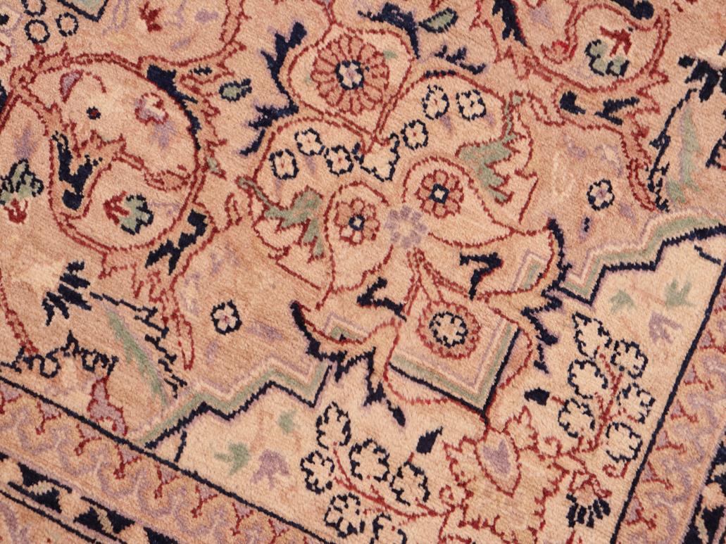 Designed with mesmerizing intricacy and gorgeous color palette, this hand-knotted masterpiece demonstrates the beauty and electrifying thrill of Pak Persian art. These meticulously hand-knotted Pak-Persian rug is made with pure wool and features breathtaking traditional, transitional, and tribal designs in bold luxurious color pallets. Known for their intricate designs these rugs are a reproduction of Persian rugs, made in Pakistan with unique Mughal designs. Made by master weavers using the same Persian texture, design and dying technique, we wanted to produce the most significant manifestation of Persian art, life, and culture. This rug is most famous for its exceptional quality, incredible designs, patterns, and vibrant rich color. Pak-Persian rugs made with Persian weave with high knot counts, which enables the high intricacy and detail found in the patterns are also referred to as "State of art", each color adds a rich beautiful detail in the artwork of this rug. The design, color, and beautiful chromatic composition with a vibrant sheen with intricate designs, exude beauty, elegance, and quality make this rug a masterpiece of its own.