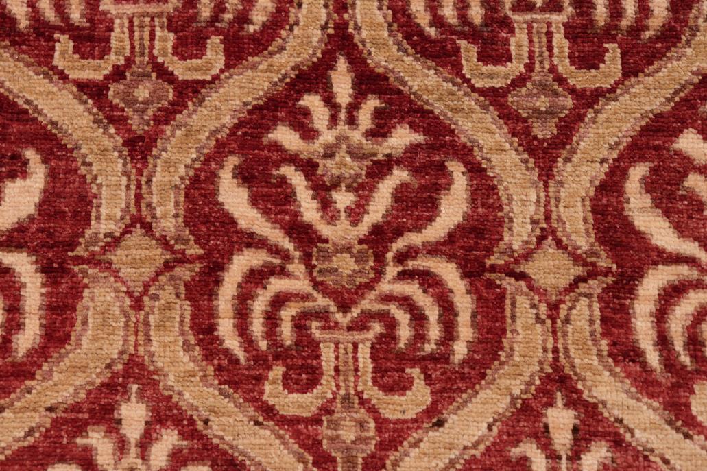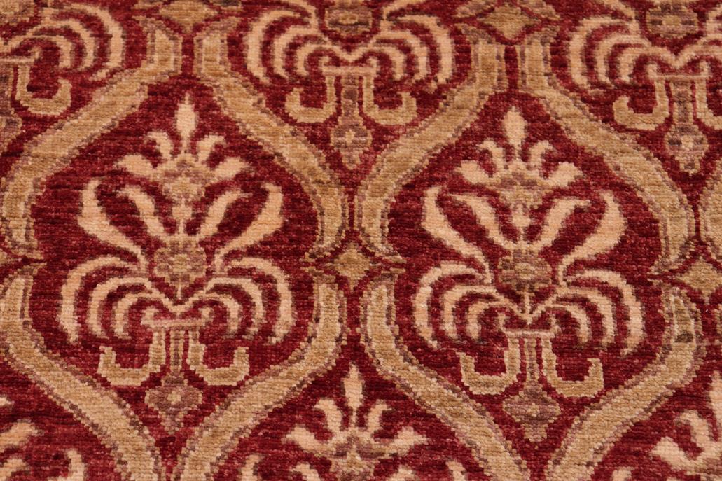 Enhance the ambiance of your home with this magnificent Persian-influenced Turkish hand-knotted rug made by skilled artisans capable of creating the most exceptional vegetable dyes and hand-spun wool. This exquisite handmade rug is a one-of-a-kind Peshawar Kafkaz, otherwise identified as Chobi, Chobi Peshawar, Oushak, or Ziegler rug. These handmade rugs are crafted in Pakistan utilizing superior-quality wool imported from Australia, New Zealand, and Korea in two types of weaves: the Persian weave and the Mori weave. This rug is meticulously crafted by hand using the finest natural vegetable dyes extracted from local plants. The artisans use a blend of hand-spun local and fine merino wool, resulting in a rug with a compelling texture, higher lanolin content, and longer staple. The artisans occasionally incorporate natural or artificial silk into the pile to enhance specific motifs. The finished product is an awe-inspiring flawless design execution and an understated palette that exudes elegance. Contemporary Peshawar rugs draw inspiration from antique Persian designs and feature modern design motifs with vibrant color tones. Hand-knotted with all-natural dyes, resulting in a unique abrash effect and subtle color variations in the pile. Peshawar rugs are known for their stunning and vibrant colors, which were achieved through a process inspired by antique methods. The rug's pile is meticulously trimmed to a moderate thickness and then stone-washed and sun-dried, resulting in a natural sheen and pleasing color tones. Transform the ambiance of your room into a luxurious haven with this gorgeous rug featuring a beautiful color palette. This stunning rug features an intricate oriental design that showcases royalty and seamlessly complements any decor. Its hand-knotted construction and natural fibers provide a soft and comfortable feel underfoot, making it the perfect addition to any room.