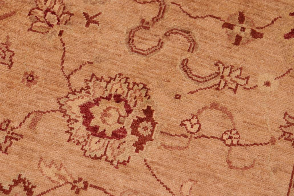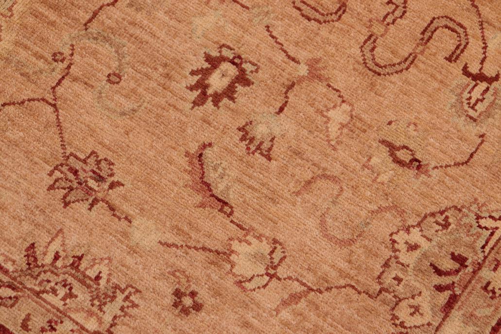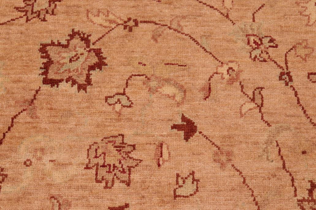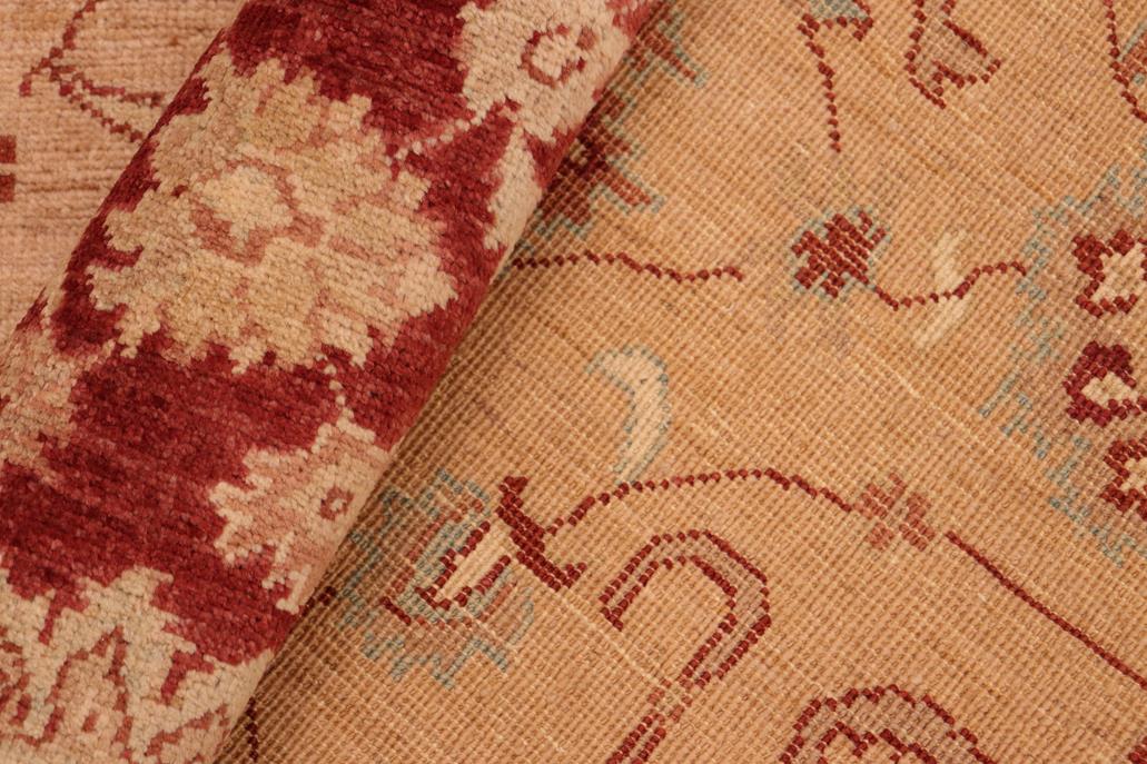 Enhance the ambiance of your home with this magnificent Persian-influenced Turkish hand-knotted rug made by skilled artisans capable of creating the most exceptional vegetable dyes and hand-spun wool. This exquisite handmade rug is a one-of-a-kind Peshawar Kafkaz, otherwise identified as Chobi, Chobi Peshawar, Oushak, or Ziegler rug. These handmade rugs are crafted in Pakistan utilizing superior-quality wool imported from Australia, New Zealand, and Korea in two types of weaves: the Persian weave and the Mori weave. This rug is meticulously crafted by hand using the finest natural vegetable dyes extracted from local plants. The artisans use a blend of hand-spun local and fine merino wool, resulting in a rug with a compelling texture, higher lanolin content, and longer staple. The artisans occasionally incorporate natural or artificial silk into the pile to enhance specific motifs. The finished product is an awe-inspiring flawless design execution and an understated palette that exudes elegance. Contemporary Peshawar rugs draw inspiration from antique Persian designs and feature modern design motifs with vibrant color tones. Hand-knotted with all-natural dyes, resulting in a unique abrash effect and subtle color variations in the pile. Peshawar rugs are known for their stunning and vibrant colors, which were achieved through a process inspired by antique methods. The rug's pile is meticulously trimmed to a moderate thickness and then stone-washed and sun-dried, resulting in a natural sheen and pleasing color tones. Transform the ambiance of your room into a luxurious haven with this gorgeous rug featuring a beautiful color palette. This stunning rug features an intricate oriental design that showcases royalty and seamlessly complements any decor. Its hand-knotted construction and natural fibers provide a soft and comfortable feel underfoot, making it the perfect addition to any room.