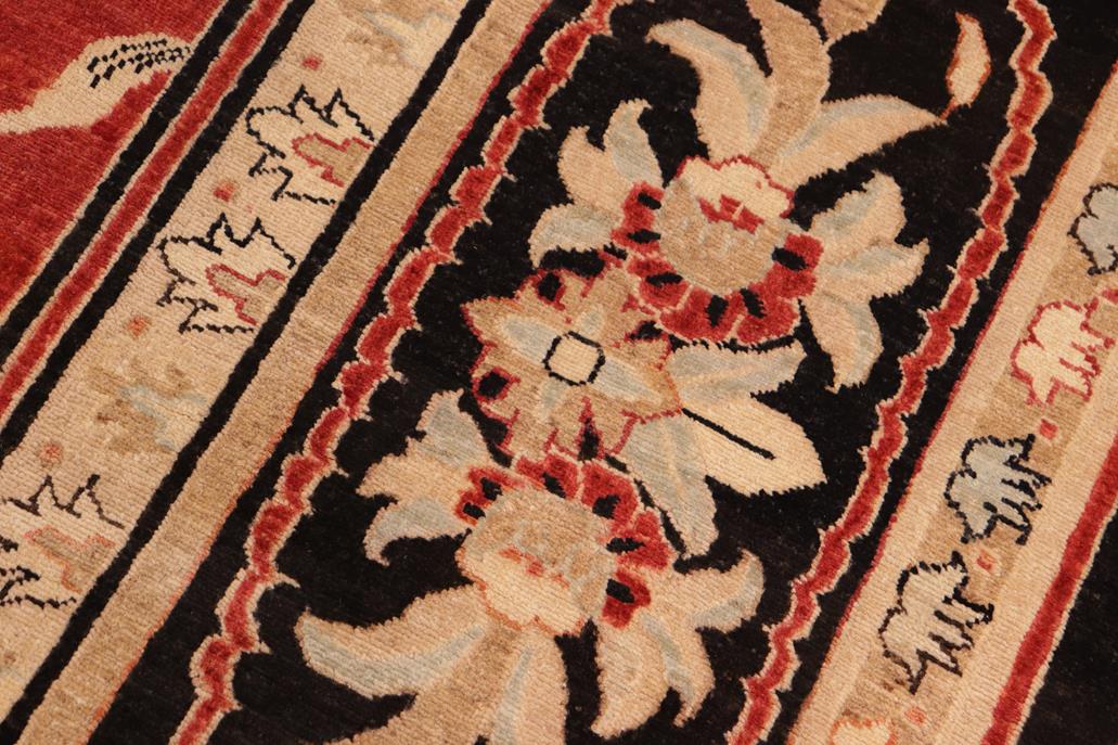 Enhance the ambiance of your home with this magnificent Persian-influenced Turkish hand-knotted rug made by skilled artisans capable of creating the most exceptional vegetable dyes and hand-spun wool. This exquisite handmade rug is a one-of-a-kind Peshawar Kafkaz, otherwise identified as Chobi, Chobi Peshawar, Oushak, or Ziegler rug. These handmade rugs are crafted in Pakistan utilizing superior-quality wool imported from Australia, New Zealand, and Korea in two types of weaves: the Persian weave and the Mori weave. This rug is meticulously crafted by hand using the finest natural vegetable dyes extracted from local plants. The artisans use a blend of hand-spun local and fine merino wool, resulting in a rug with a compelling texture, higher lanolin content, and longer staple. The artisans occasionally incorporate natural or artificial silk into the pile to enhance specific motifs. The finished product is an awe-inspiring flawless design execution and an understated palette that exudes elegance. Contemporary Peshawar rugs draw inspiration from antique Persian designs and feature modern design motifs with vibrant color tones. Hand-knotted with all-natural dyes, resulting in a unique abrash effect and subtle color variations in the pile. Peshawar rugs are known for their stunning and vibrant colors, which were achieved through a process inspired by antique methods. The rug's pile is meticulously trimmed to a moderate thickness and then stone-washed and sun-dried, resulting in a natural sheen and pleasing color tones. Transform the ambiance of your room into a luxurious haven with this gorgeous rug featuring a beautiful color palette. This stunning rug features an intricate oriental design that showcases royalty and seamlessly complements any decor. Its hand-knotted construction and natural fibers provide a soft and comfortable feel underfoot, making it the perfect addition to any room.