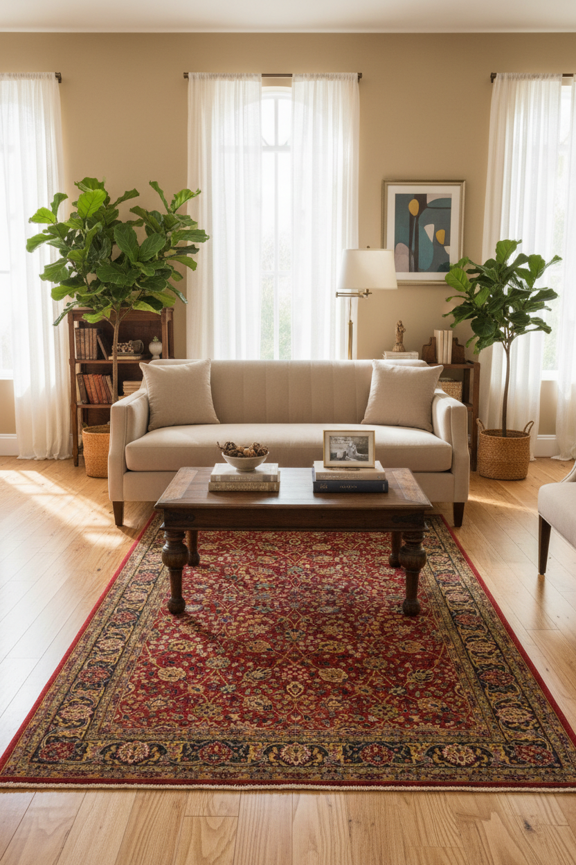 Each rug is meticulously hand-knotted by skilled artisans using 100% hand-spun wool and all-natural vegetable dyes, ensuring exceptional durability and heirloom quality, which blends perfectly with traditional and transitional interiors.