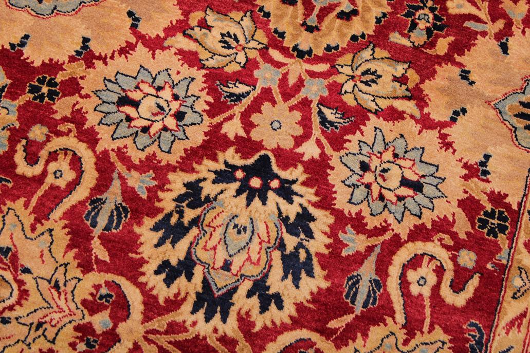 Designed with mesmerizing intricacy and gorgeous color palette, this hand-knotted masterpiece demonstrates the beauty and electrifying thrill of Pak Persian art. These meticulously hand-knotted Pak-Persian rug is made with pure wool and features breathtaking traditional, transitional, and tribal designs in bold luxurious color pallets. Known for their intricate designs these rugs are a reproduction of Persian rugs, made in Pakistan with unique Mughal designs. Made by master weavers using the same Persian texture, design and dying technique, we wanted to produce the most significant manifestation of Persian art, life, and culture. This rug is most famous for its exceptional quality, incredible designs, patterns, and vibrant rich color. Pak-Persian rugs made with Persian weave with high knot counts, which enables the high intricacy and detail found in the patterns are also referred to as "State of art", each color adds a rich beautiful detail in the artwork of this rug. The design, color, and beautiful chromatic composition with a vibrant sheen with intricate designs, exude beauty, elegance, and quality make this rug a masterpiece of its own.