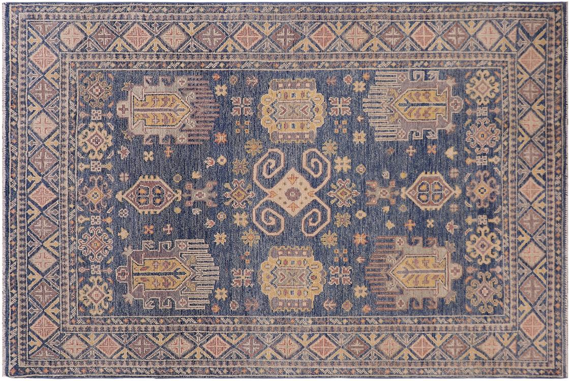 Bohemian Ziegler Iker Blue/Blue Hand-Knotted Wool Rug - 4'0'' x 6'2''