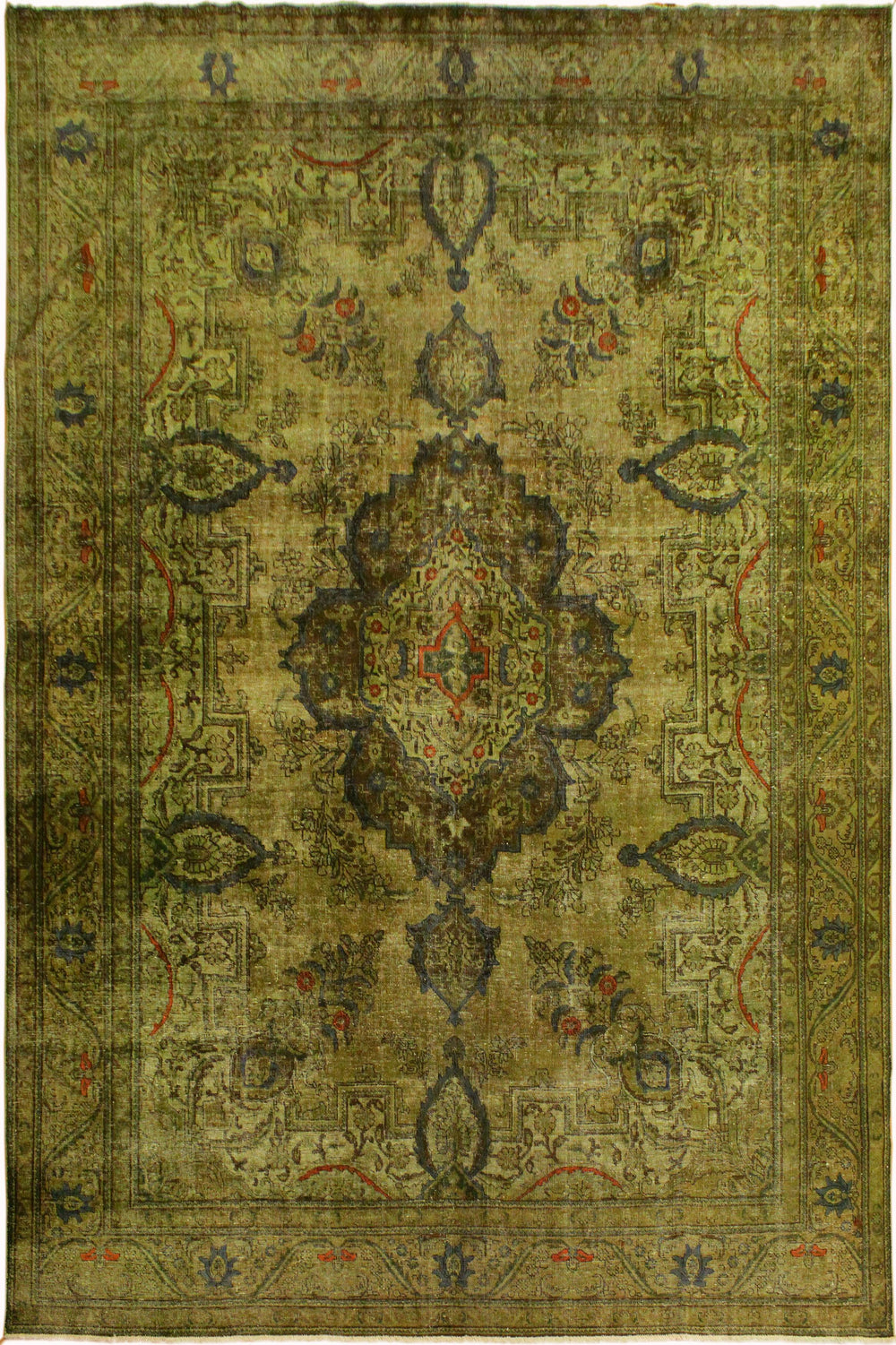 This stunning hand-knotted vintage wool rug is a remarkable addition to any decor, capturing attention with its exceptional colors and intricate traditional design. Crafted by highly skilled artisans renowned for their exquisite Persian knotted rugs, each piece reflects an impressive antique aesthetic. The meticulous process of neutralizing original colors, distressing, and saturating them in an elegant color palette gives them a fresh and modern appeal. With the elegance of aged and timeworn beauty, these rugs exude the charm of vintage pieces without the burden of natural wear. These gorgeous rugs feature faded patterns, muted tones, and softened textures that authentically replicate antique rugs while maintaining a striking and classic presence. This masterpiece draws profound inspiration from timeless rug designs, seamlessly blending harmony and contrast to elevate any space. With its intricate design and exquisite coloration, this wool rug is undeniably a standout piece that transforms any room.