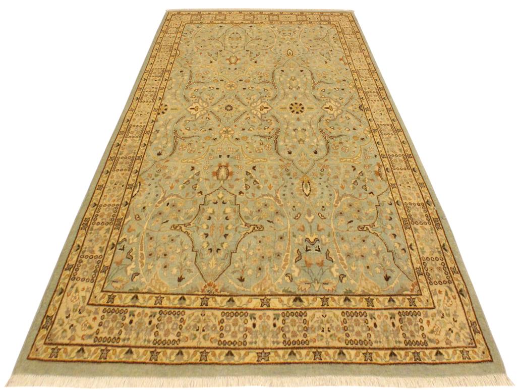 Turkish Knotted Tabriz Istanbul Ira Blue/Ivory Wool Rug - 4'0'' x 5'11''