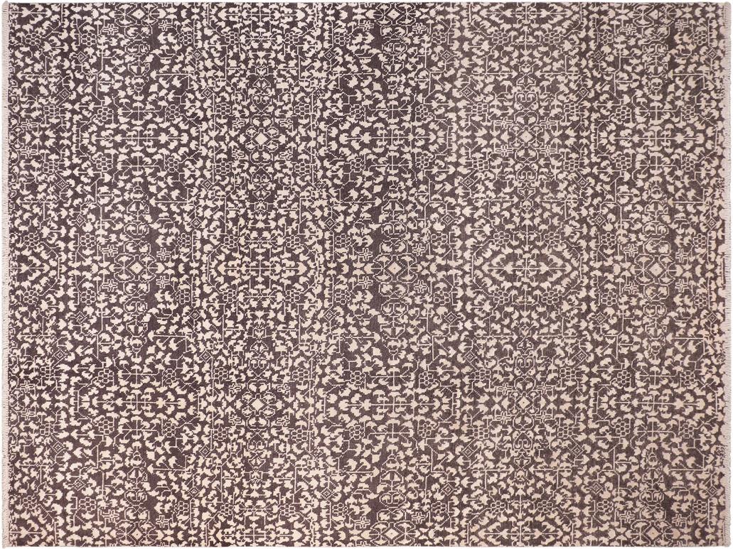 Contemporary Ellie Charcoal/Beige Wool&Silk Rug - 7'11'' x 9'9''