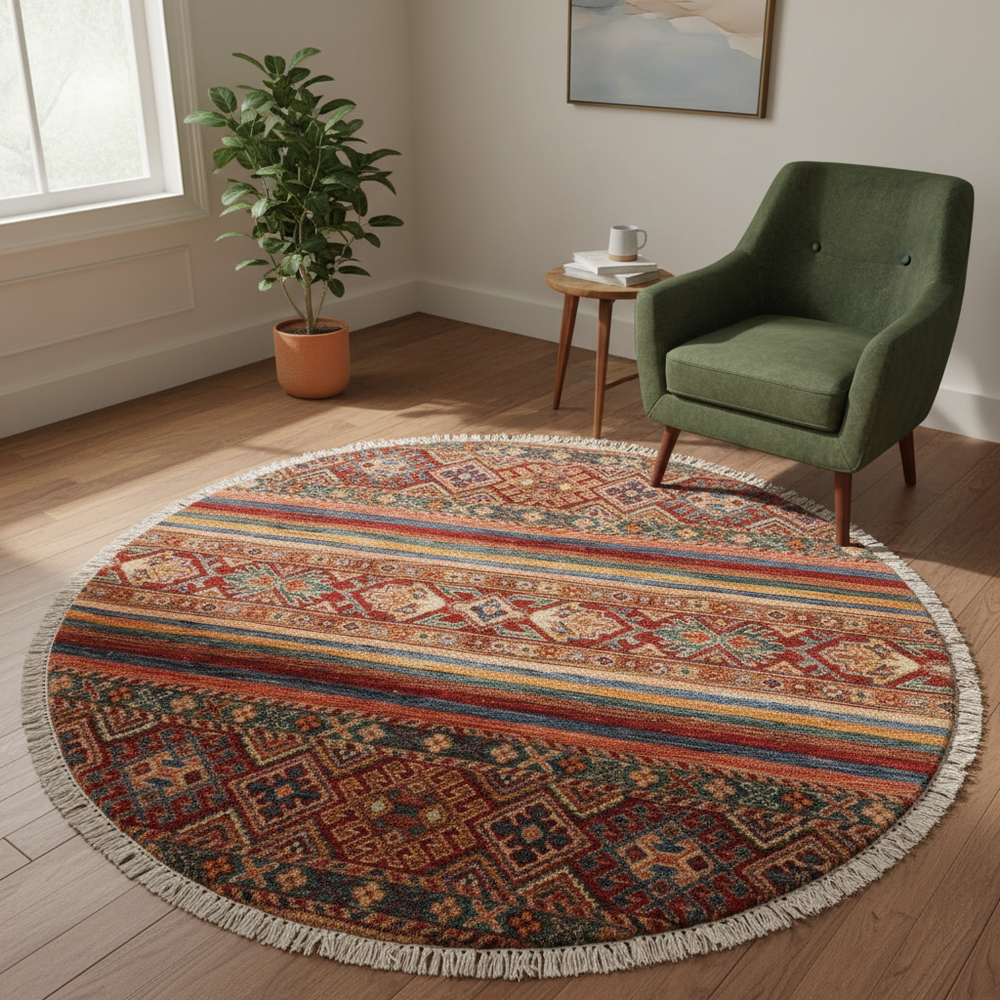 Rug Size: 3'3''X3'4''Material: WoolStyle: Rustic, Tribal, Geometric, Southwestern, OrientalColors: Red Blue Gold GreenWeave Type: Hand Knotted, HandmadePile Height: 0.25 - 0.50 inch
