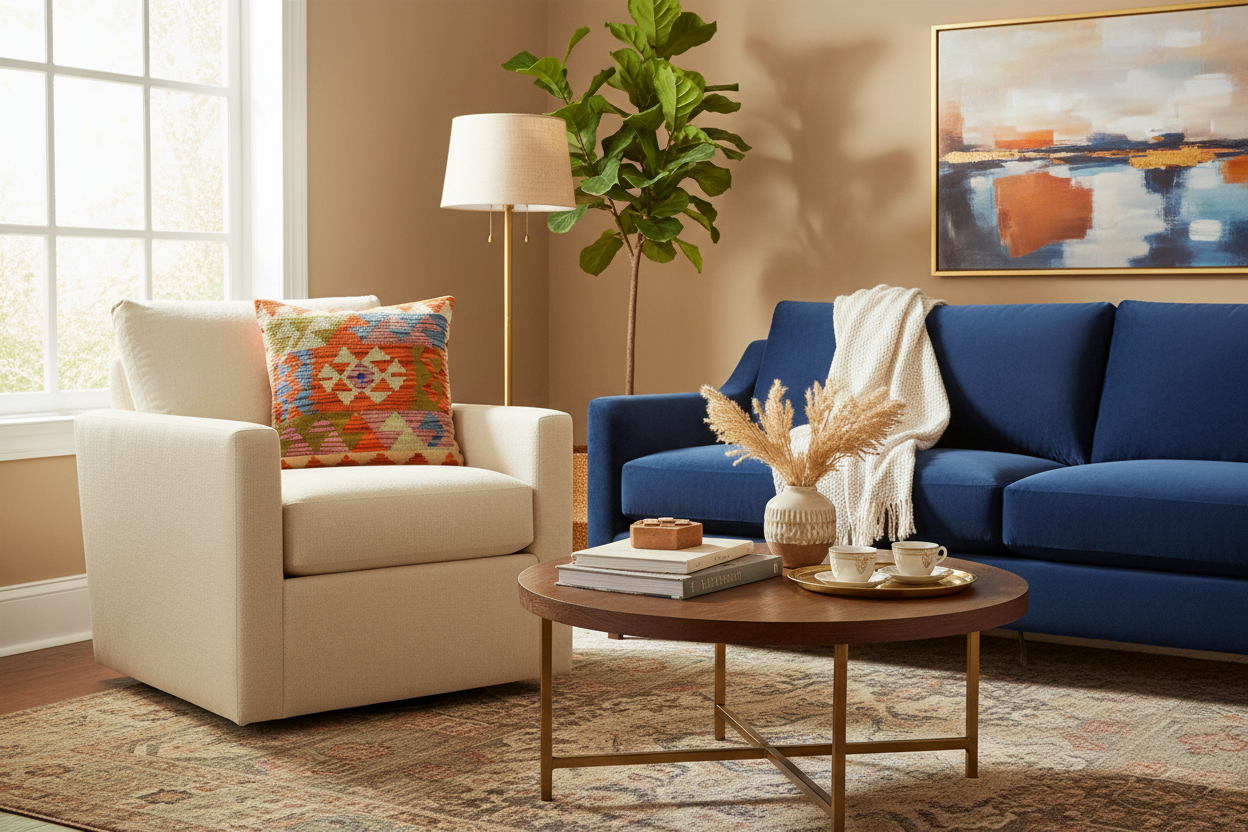 • Colors: Rust Blue Beige
