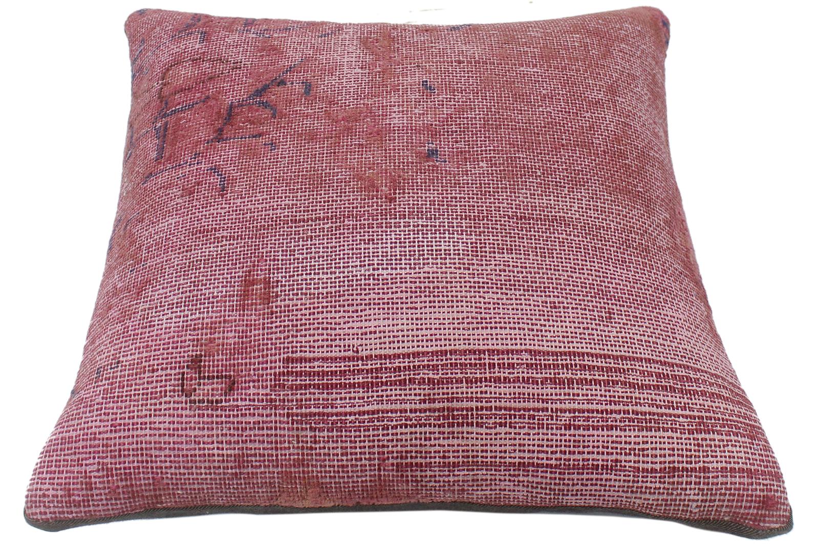 Embellish your home with this timeless casual chic handmade throw pillow made with antique vintage distressed wool rug. A modern look on the timeless antique distressed pattern this elegant pillow provides texture and dimension. A mesmerizing addition to any decor, this beautiful, elegant pillow features beautiful colors with unique design made by skilled artisans. An intricate design and exquisite coloration make this handmade pillow a standout piece in any decor.