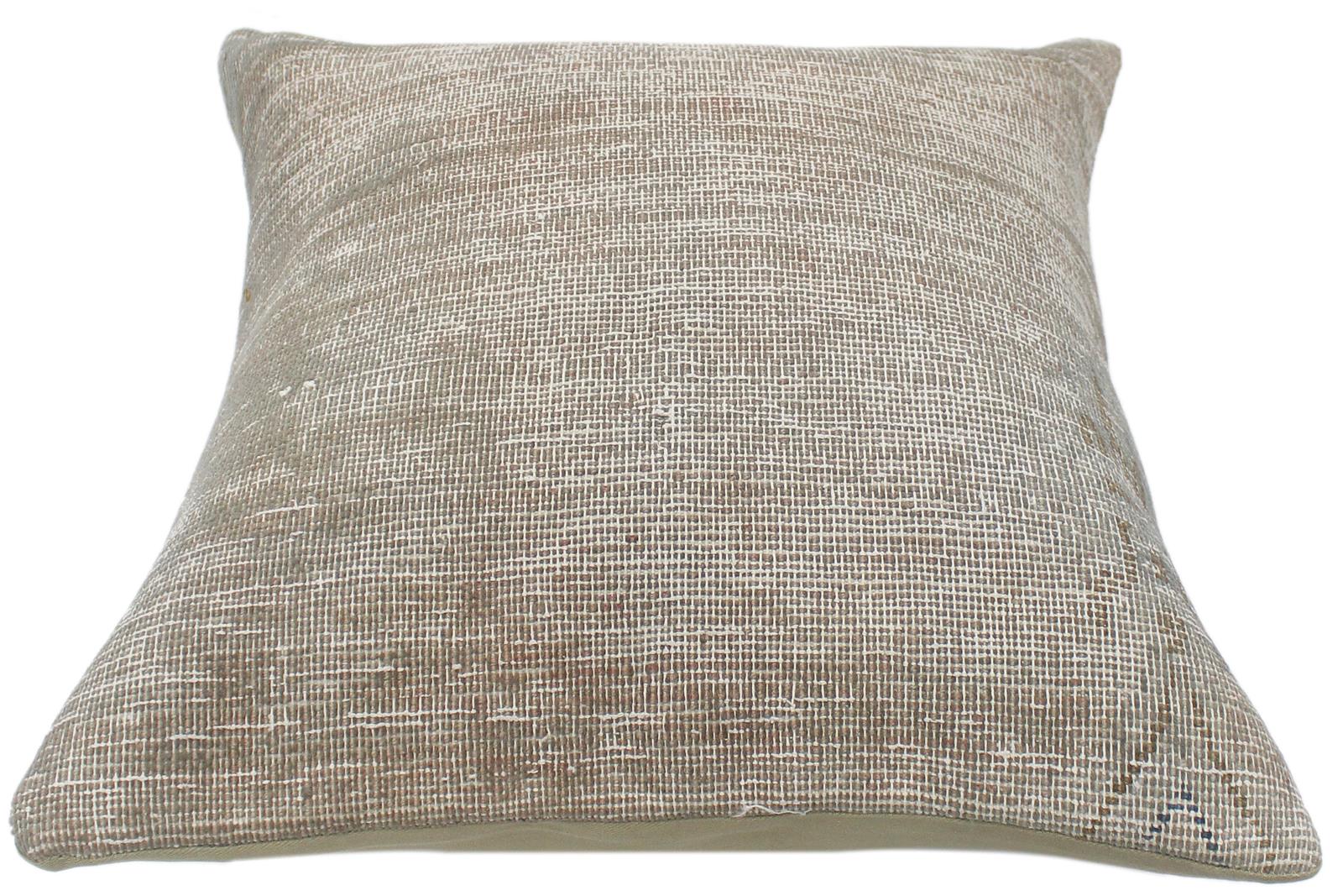 Embellish your home with this timeless casual chic handmade throw pillow made with antique vintage distressed wool rug. A modern look on the timeless antique distressed pattern this elegant pillow provides texture and dimension. A mesmerizing addition to any decor, this beautiful, elegant pillow features beautiful colors with unique design made by skilled artisans. An intricate design and exquisite coloration make this handmade pillow a standout piece in any decor.