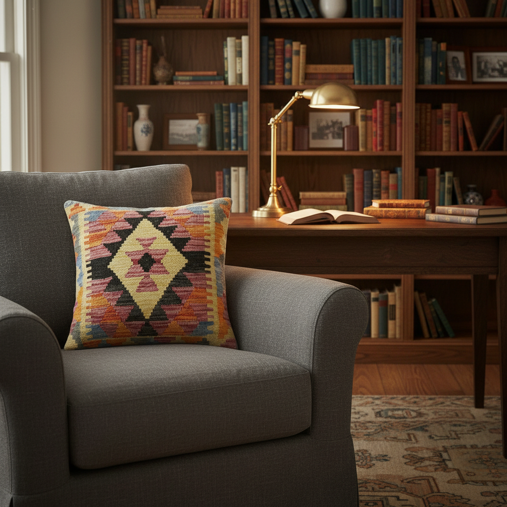 Rustic Melville Turkish Hand-Woven Kilim Pillow