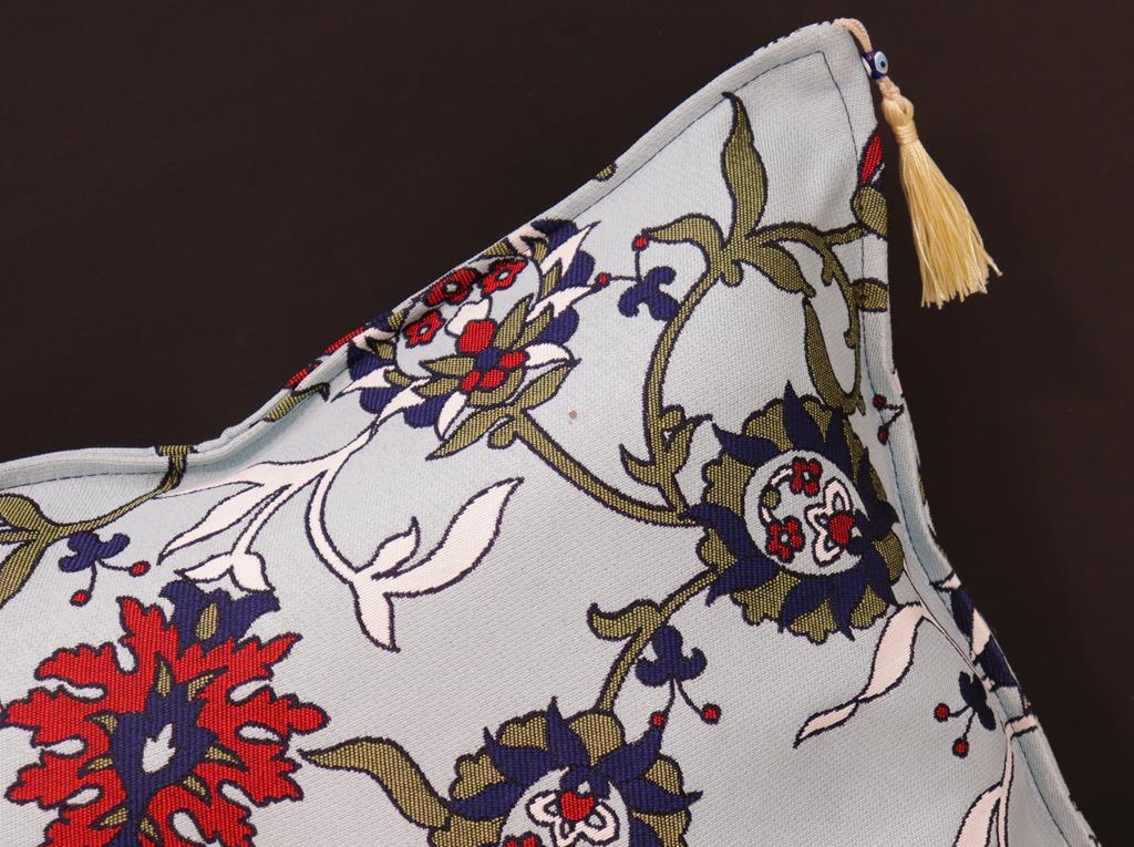 Embellish your home with this timeless casual chic Turkish decorative throw pillow. Handmade Jacquard woven on heavy Chenille fabric in a Turkish classic design inspired by an antique oriental tapestry, these exquisite pillows are a perfect addition to any decor. Made in a beautiful vibrant color pallet these beautiful pillows are double sided with a beautiful repetitive geometrical, naturalistic floral and traditional pattern. Masterfully artisan-crafted with a contemporary fashion palette producing bold intricate sharp patterns makes these decorative pillows a standout piece in any decor.