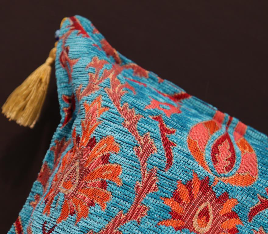 Embellish your home with this timeless casual chic Turkish decorative throw pillow. Handmade Jacquard woven on heavy Chenille fabric in a Turkish classic design inspired by an antique oriental tapestry, these exquisite pillows are a perfect addition to any decor. Made in a beautiful vibrant color pallet these beautiful pillows are double sided with a beautiful repetitive geometrical, naturalistic floral and traditional pattern. Masterfully artisan-crafted with a contemporary fashion palette producing bold intricate sharp patterns makes these decorative pillows a standout piece in any decor.