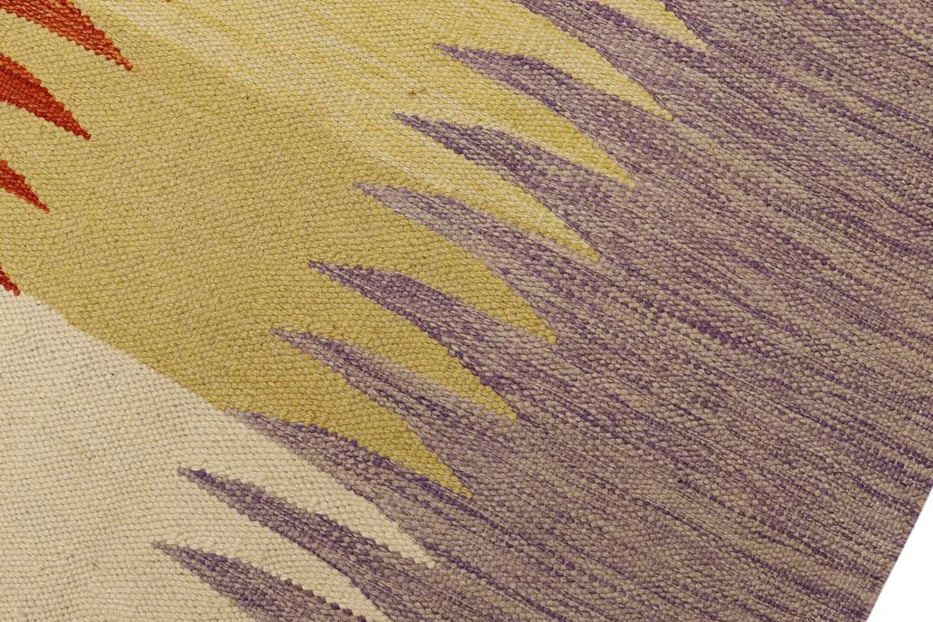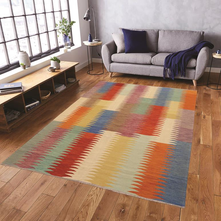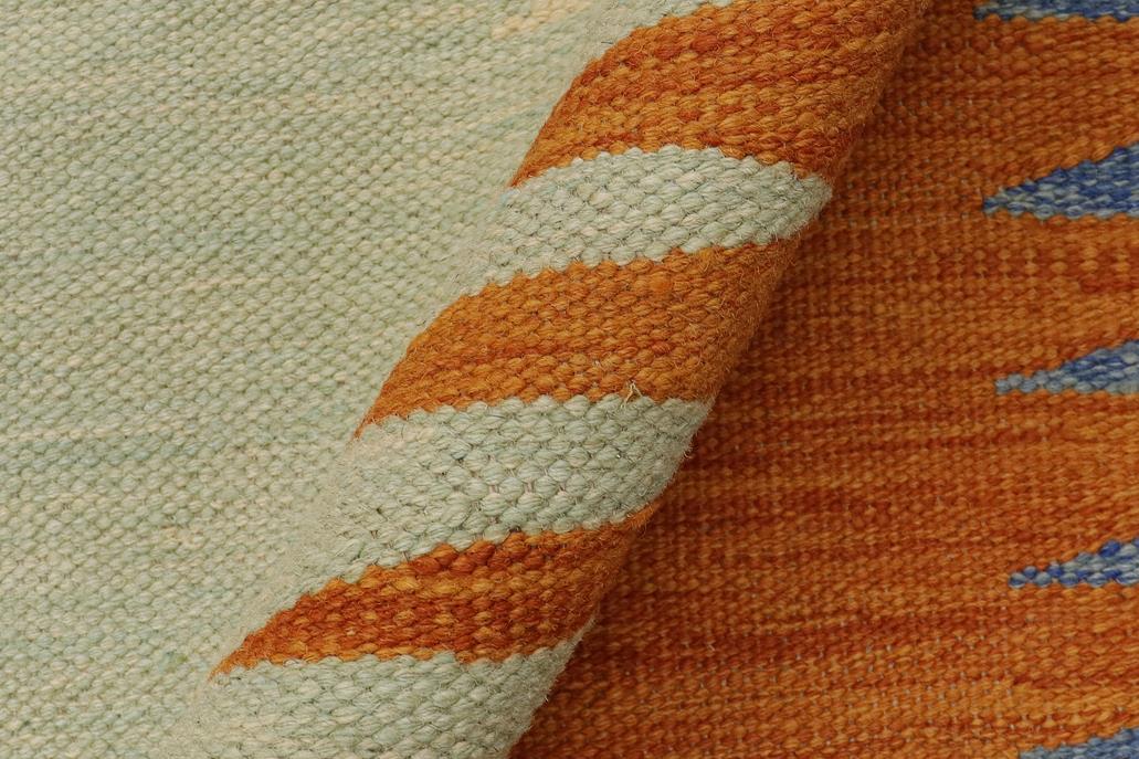 Elevate the elegance of your home with this stunning hand-woven tribal Kilim wool rug. Meticulously crafted on a loom by the Nomad Turkman people using hand-spun wool and 100% natural vegetable dyes, these rugs are recognized for their repetitive geometric patterns, incorporating naturalistic floral and traditional designs. The contemporary fashion palette results in bold, sharp patterns that are incredibly versatile, as the pattern is the same on both sides. These reversible rugs feature a lighter shade on one side and brighter colors on the other, providing versatility according to preference. These unique rugs are made by knotting short strands of different colors onto the warps and securing them by tightly pressing the wefts. The designs are created by interweaving the various colored wefts and warps. Kilims are known for their exceptional durability and versatility, making them truly unique rugs.