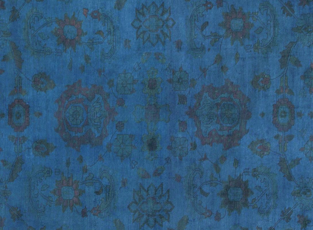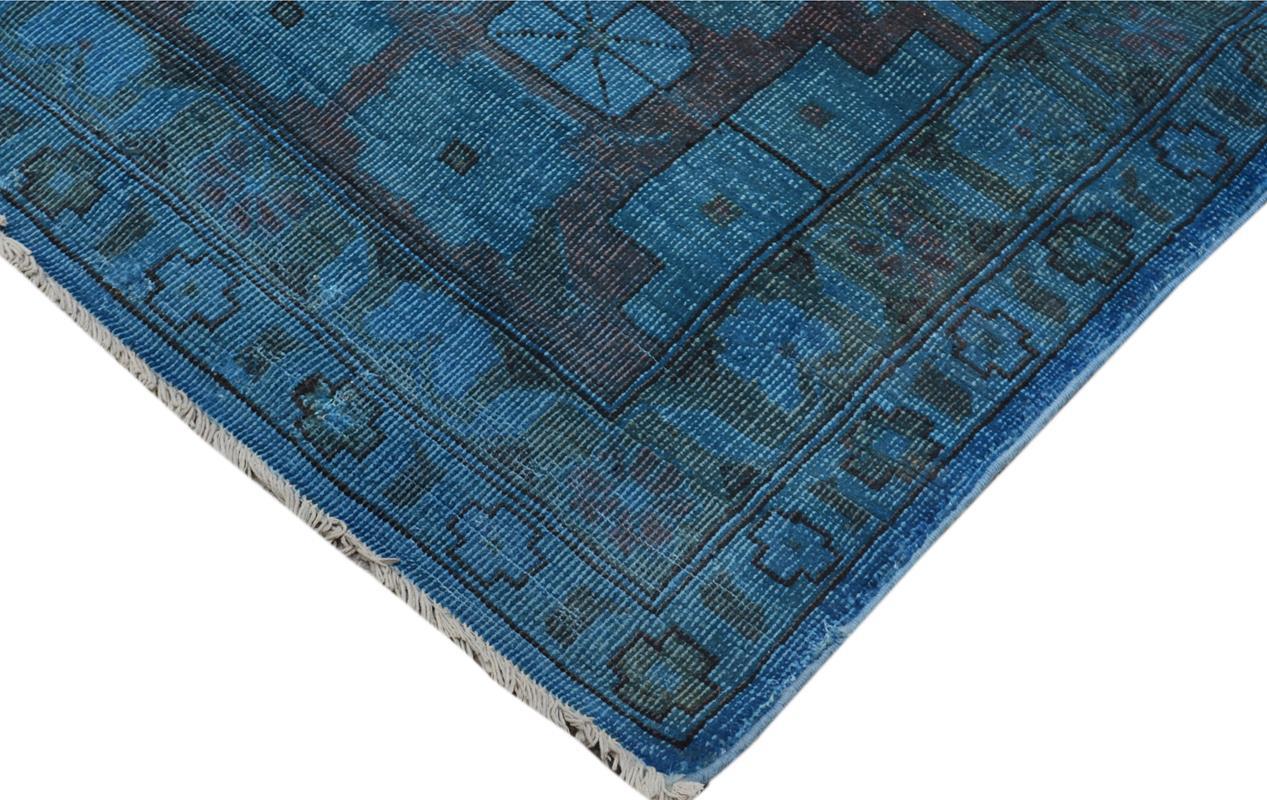 Masterfully hand-knotted by skilled artists, this over dyed hand knotted rug highlights careful attention to detail and color to create a remarkable chromatic composition. Each rug is hand knotted using centuries old techniques and mellowed down by the natural energy of the sun. While retaining the original design each rug is given a unique artistic composition by over dying and washing each rug in remarkable color palette to produce a bolder, brighter, modern and saturated look. The modern inspired look with rich, luscious detailing, vibrant feel and a show-stopping palette with saturated colors provides an unexpected decor twist. The historic and timeless appearance of this collection offers an exquisite quality of one-of-a-kind artistic rugs.