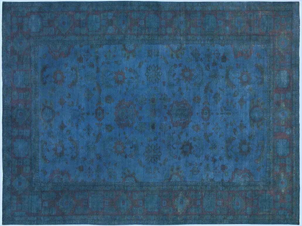 Over Dyed Rose Blue/Blue Hand-Knotted Rug 11'11 x 17'2