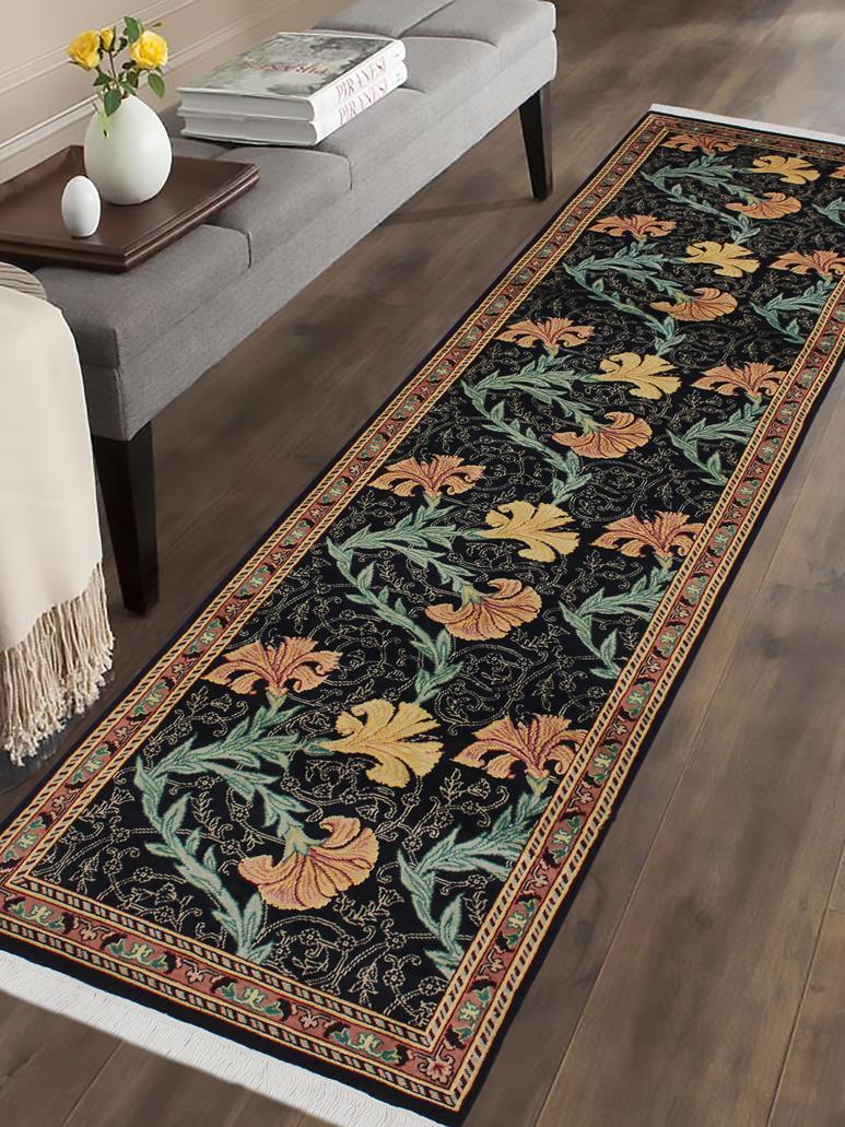Carnation Pak Persian Pansy Black/Pink Wool Runner - 2'8'' x 10'1''