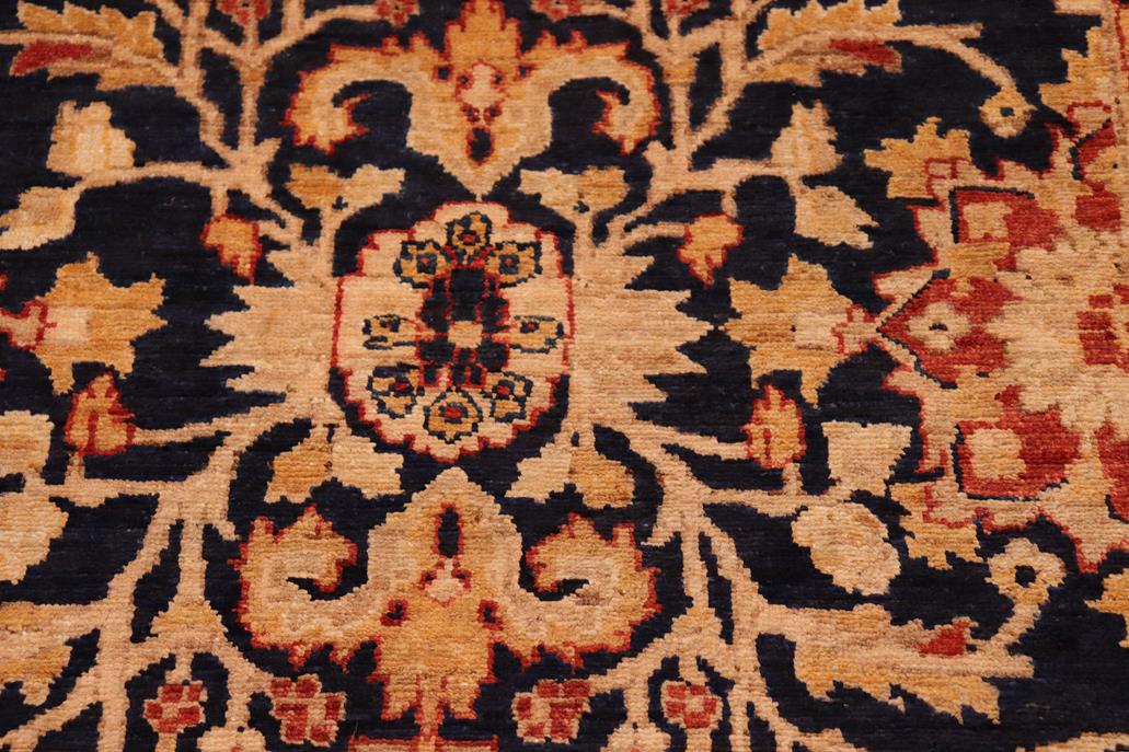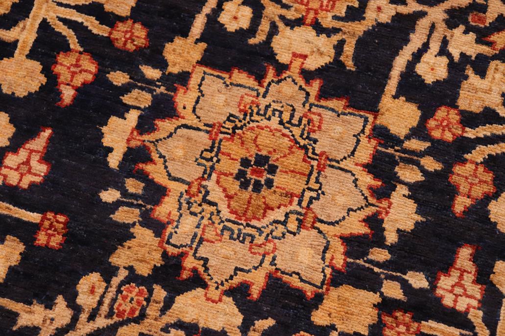 Enhance the ambiance of your home with this magnificent Persian-influenced Turkish hand-knotted rug made by skilled artisans capable of creating the most exceptional vegetable dyes and hand-spun wool. This exquisite handmade rug is a one-of-a-kind Peshawar Kafkaz, otherwise identified as Chobi, Chobi Peshawar, Oushak, or Ziegler rug. These handmade rugs are crafted in Pakistan utilizing superior-quality wool imported from Australia, New Zealand, and Korea in two types of weaves: the Persian weave and the Mori weave. This rug is meticulously crafted by hand using the finest natural vegetable dyes extracted from local plants. The artisans use a blend of hand-spun local and fine merino wool, resulting in a rug with a compelling texture, higher lanolin content, and longer staple. The artisans occasionally incorporate natural or artificial silk into the pile to enhance specific motifs. The finished product is an awe-inspiring execution of flawless design and an understated palette that exudes elegance. Contemporary Peshawar rugs draw inspiration from antique Persian designs and feature modern design motifs with vibrant color tones. Hand-knotted with all-natural dyes, resulting in a unique abrash effect and subtle color variations in the pile. Peshawar rugs are known for their stunning and vibrant colors, achieved through a process inspired by antique methods. The rug's pile is meticulously trimmed to a moderate thickness and then stone-washed and sun-dried, resulting in a natural sheen and pleasing color tones. Transform the ambiance of your room into a luxurious haven with this gorgeous rug featuring a beautiful color palette. This stunning rug features an intricate oriental design that showcases royalty and seamlessly complements any decor. Its hand-knotted construction and natural fibers provide a soft and comfortable feel underfoot, making it the perfect addition to any room.