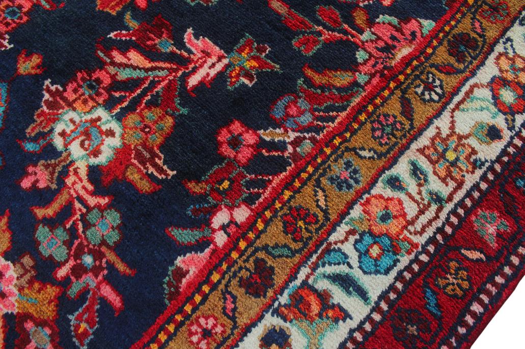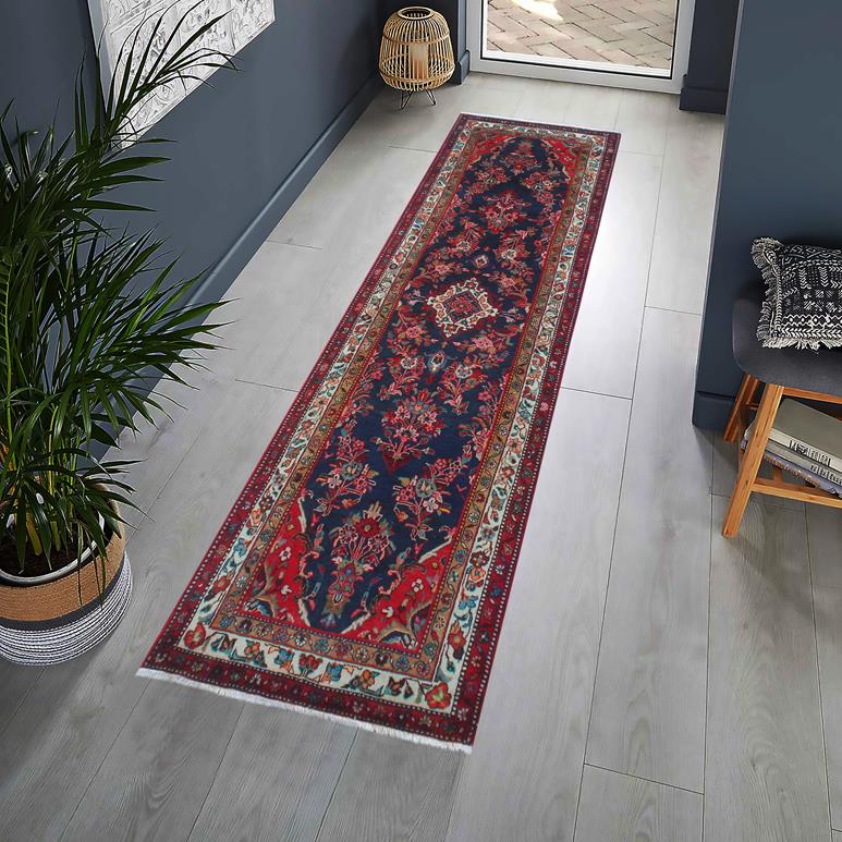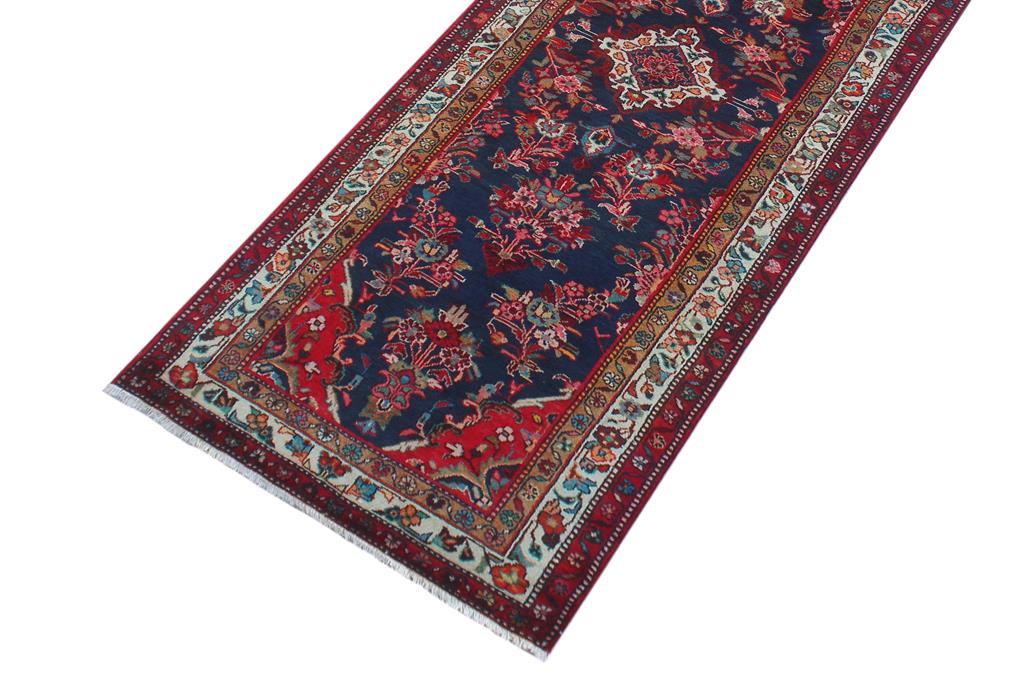 Vintage Antique Tabriz Bourke Blue Red Hand Knotted Wool Runner- 3'5'' x 9'3''