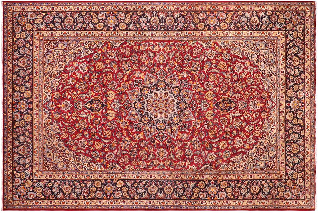Vintage Antique Kashan Margaret Red Blue Hand Knotted Wool Rug- 9'9'' x 12'0''