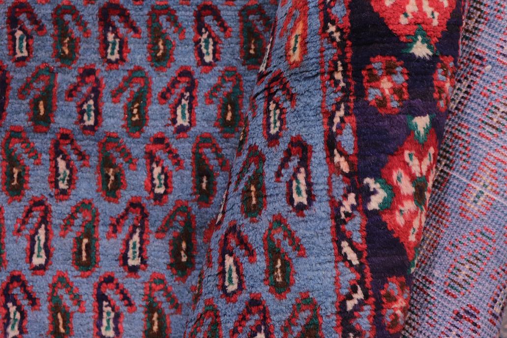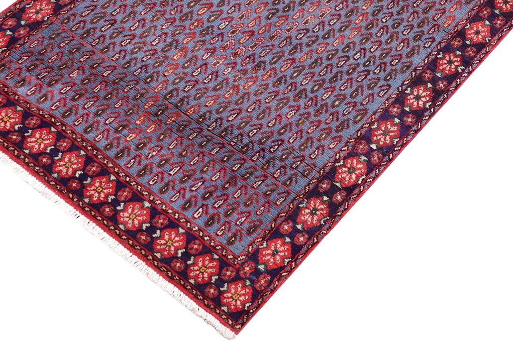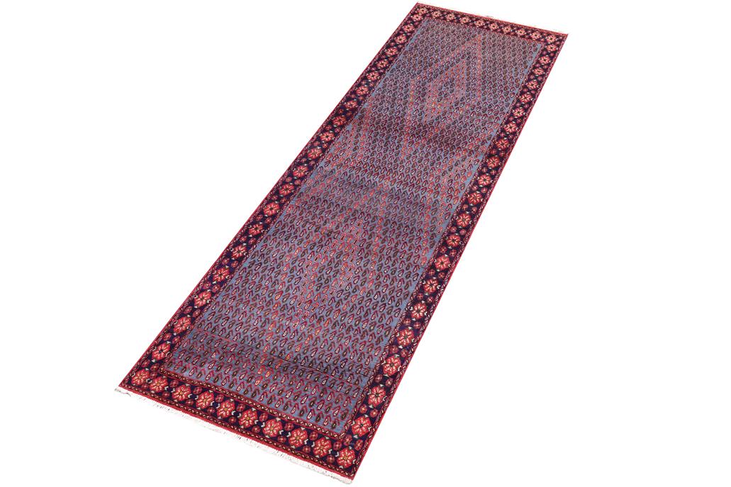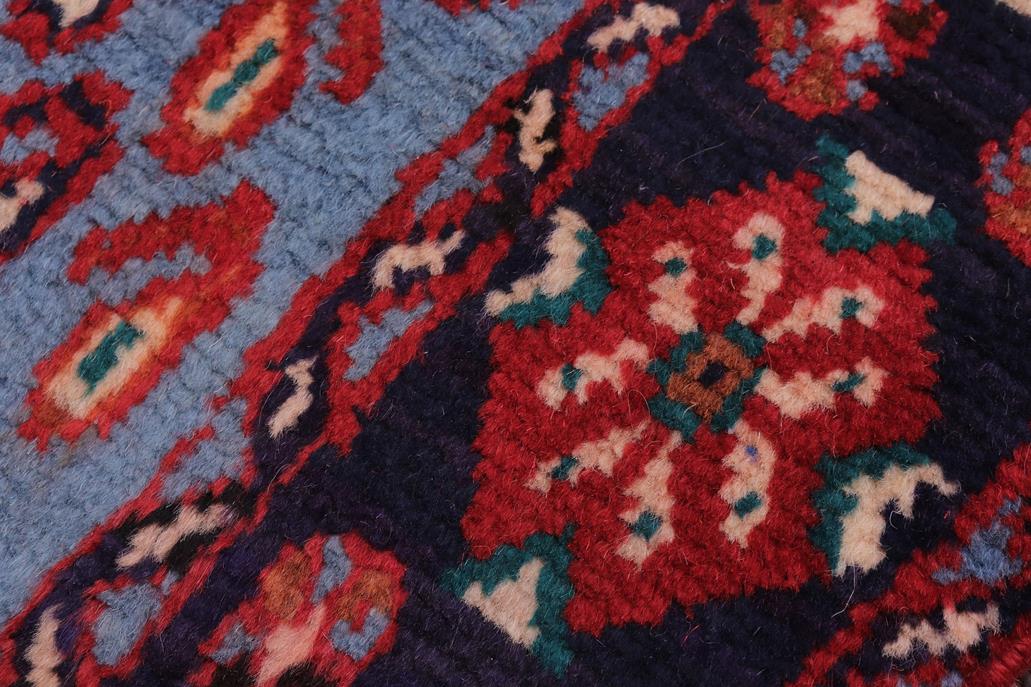 Vintage Antique Kashan Marquis Blue Rust Hand Knotted Wool Runner- 3'4'' x 9'9''