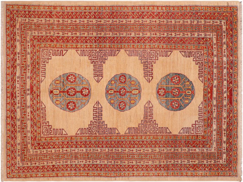 A Persian influenced Turkish hand knotted rug made by skilled artisans capable of creating the most exceptional vegetable dyes and hand-spun New Zealand wool. This gorgeous one of a kind handmade rugs is also known as a Chobi Ziegler Rug. This gorgeous rug is extremely versatile and is famous for its pleasing color palette and informal design that works in a myriad of interiors. It has been expertly hand-tied, finished, sun-dried, and can contain up to 1.5 million knots. It takes 4 skilled artisans to hand knot this rug nine to twelve months to complete this piece of art. The invigorating colors and patterns in this rug will give your home an elegant and fresh appearance. While drawing upon the coloring and patterns of antique rugs, contemporary pieces incorporate modern design motifs and feature vibrant color tones. Give your room a luxurious look and feel with this beautiful rug with gorgeous color pallet. The intricate design allows this oriental rug to create a royal ambience in any d̩cor. Hand knotted construction and natural fibers gives this rug soft feel under your feet.