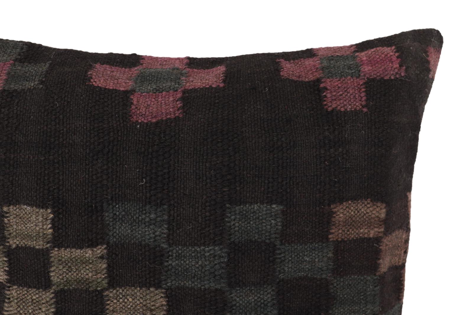 Rustic Stark Turkish Hand-Woven Kilim Pillow