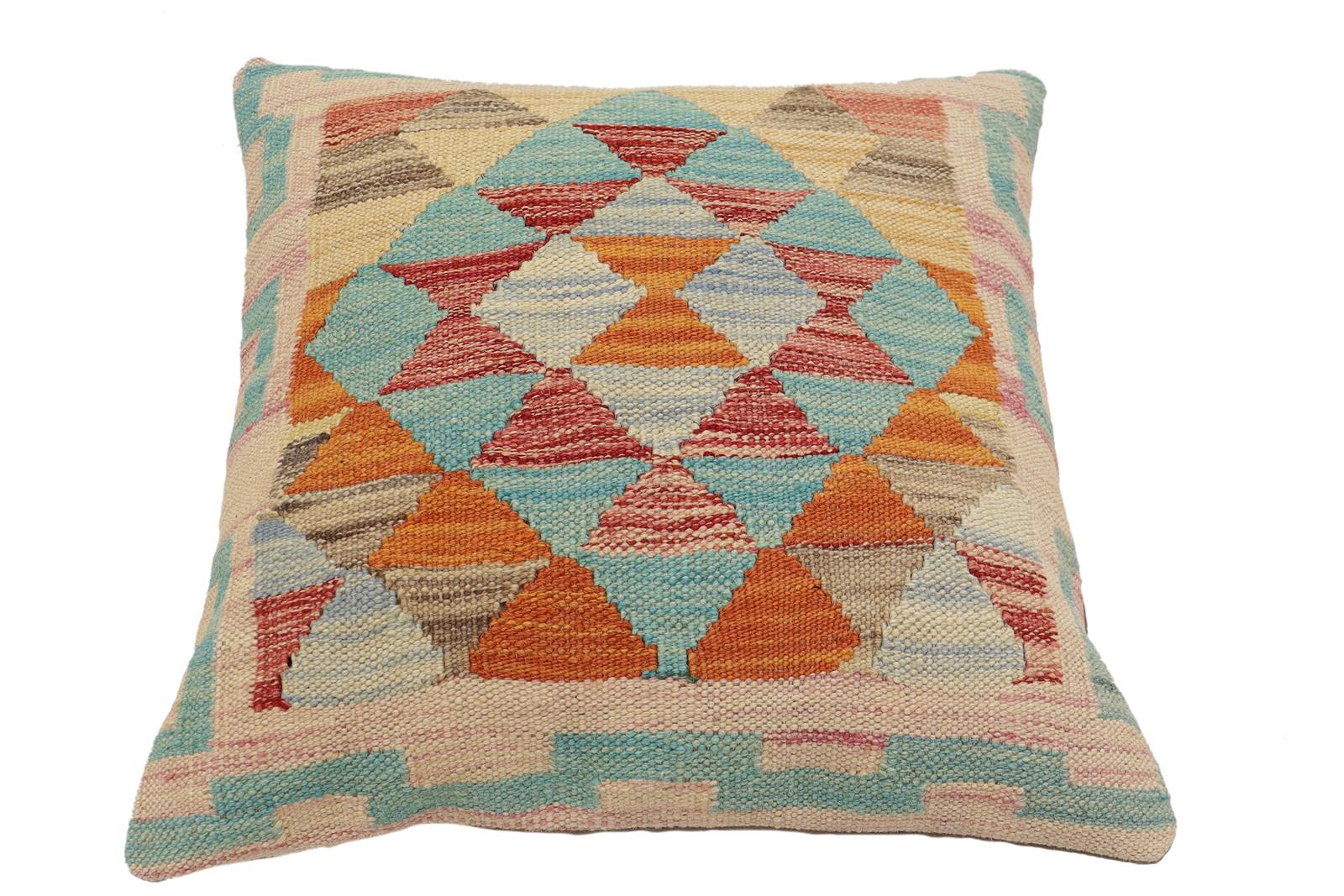 Embellish your home with this timeless casual chic handmade Southwestern Kilim throw pillow covers made with wool and cotton. Constructed on a loom by Nomad Turkman people with hand-spun wool and Natural Vegetable dyes these beautiful Kilim pillow covers are known for their beautiful repetitive geometrical, naturalistic floral, and traditional patterns yet still giving it a modern look. Masterfully artisan-crafted on traditional Kilim looms with a contemporary fashion palette producing bold intricate sharp patterns making them a standout piece in any decor.