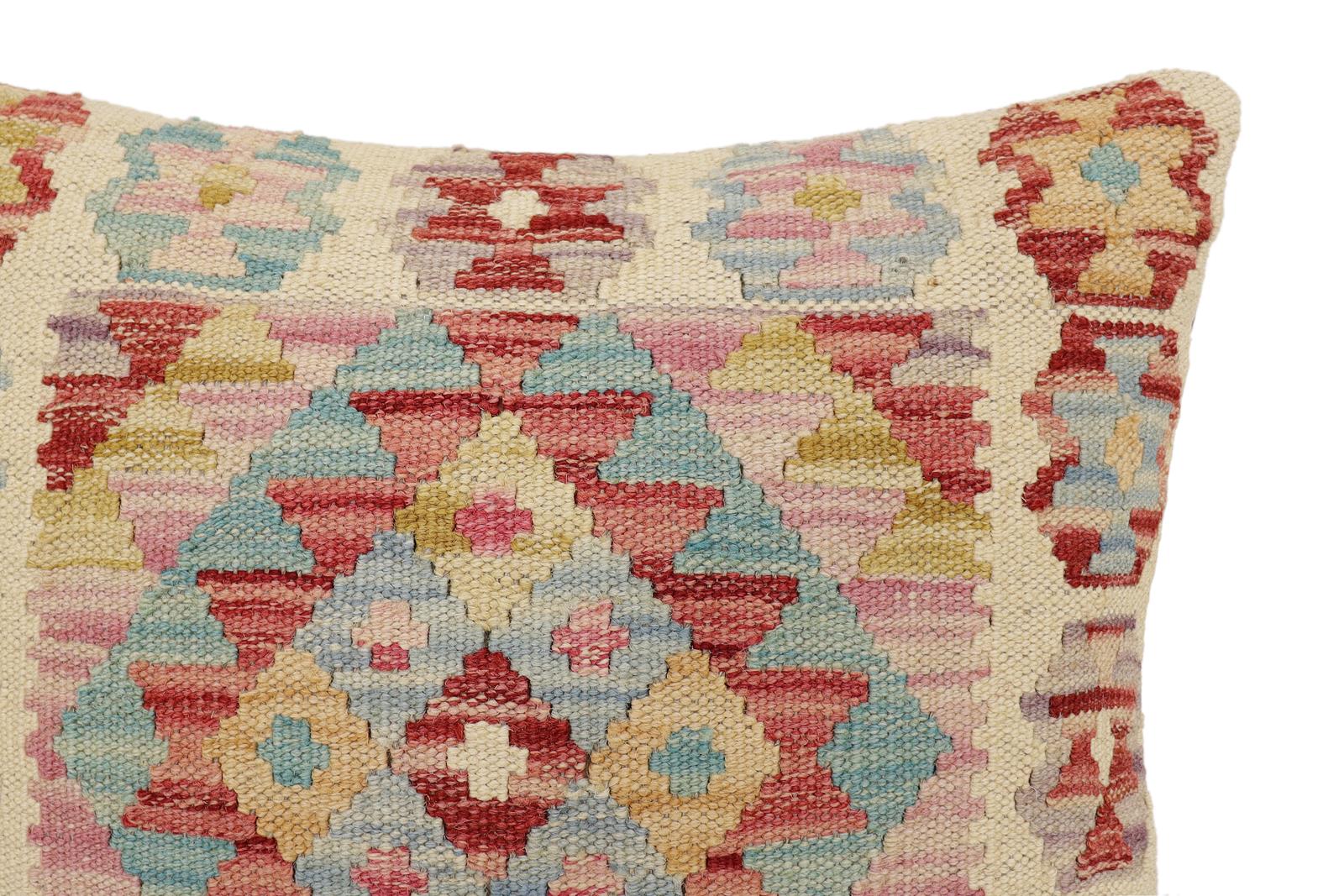 Embellish your home with this timeless casual chic handmade Southwestern Kilim throw pillow covers made with wool and cotton. Constructed on a loom by Nomad Turkman people with hand-spun wool and Natural Vegetable dyes these beautiful Kilim pillow covers are known for their beautiful repetitive geometrical, naturalistic floral, and traditional patterns yet still giving it a modern look. Masterfully artisan-crafted on traditional Kilim looms with a contemporary fashion palette producing bold intricate sharp patterns making them a standout piece in any decor.