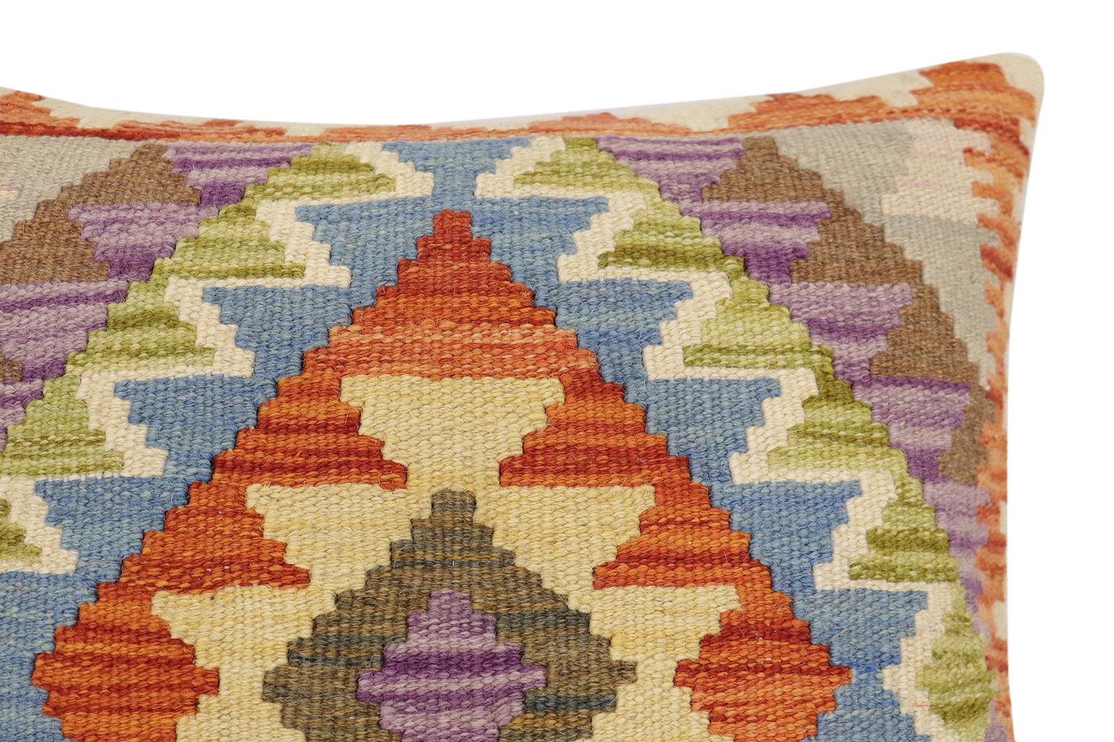 Embellish your home with this timeless casual chic handmade Southwestern Kilim throw pillow covers made with wool and cotton. Constructed on a loom by Nomad Turkman people with hand-spun wool and Natural Vegetable dyes these beautiful Kilim pillow covers are known for their beautiful repetitive geometrical, naturalistic floral, and traditional patterns yet still giving it a modern look. Masterfully artisan-crafted on traditional Kilim looms with a contemporary fashion palette producing bold intricate sharp patterns making them a standout piece in any decor.