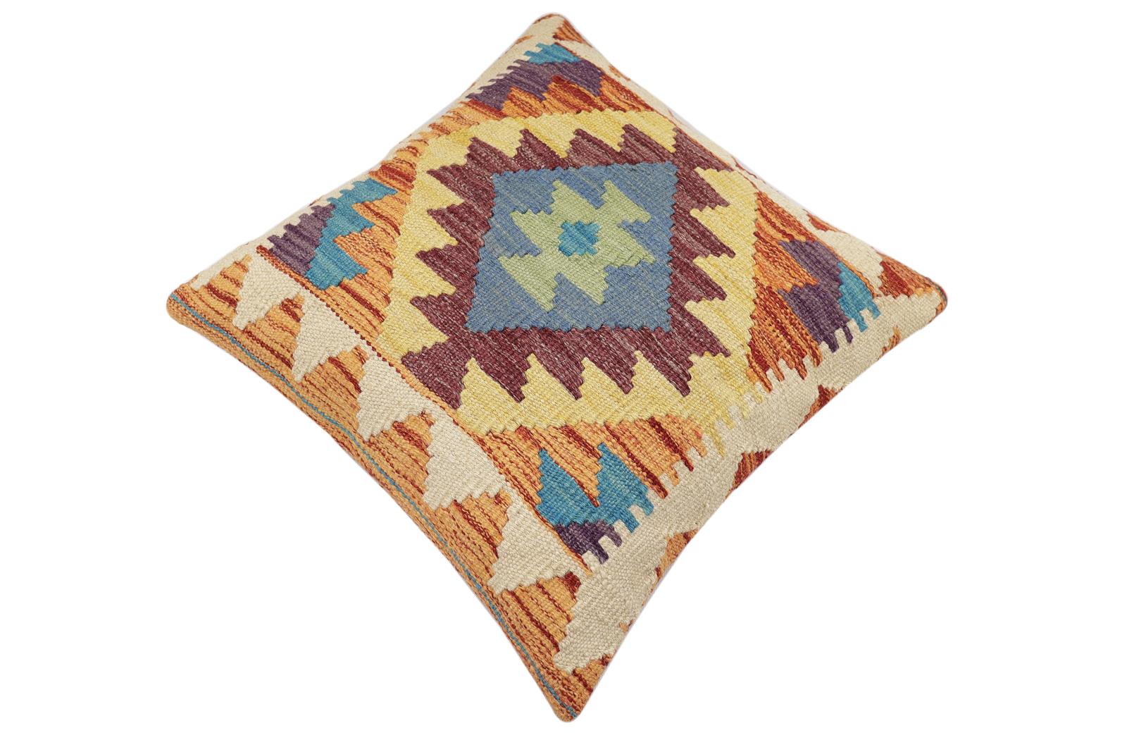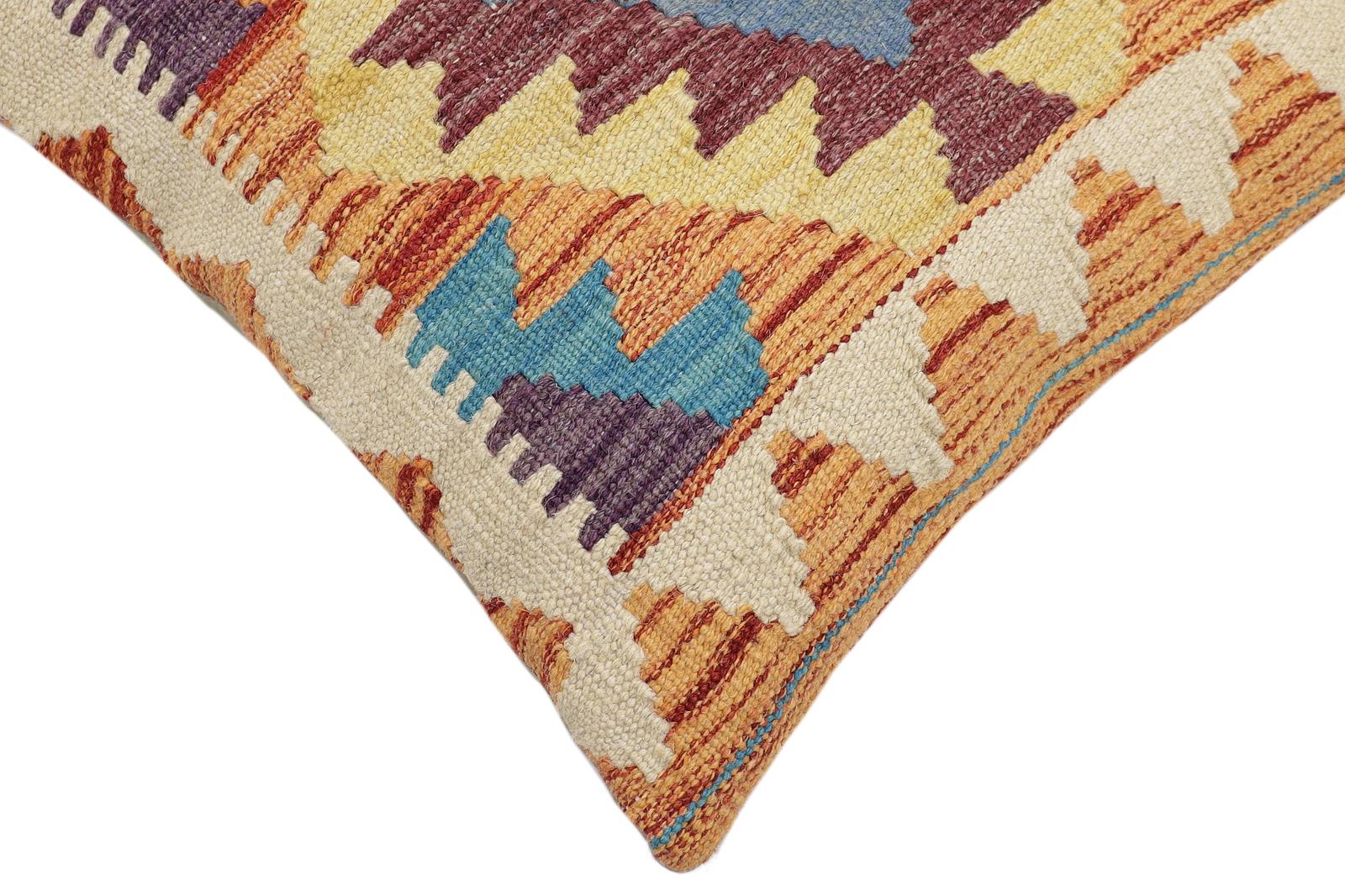 Embellish your home with this timeless casual chic handmade Southwestern Kilim throw pillow covers made with wool and cotton. Constructed on a loom by Nomad Turkman people with hand-spun wool and Natural Vegetable dyes these beautiful Kilim pillow covers are known for their beautiful repetitive geometrical, naturalistic floral, and traditional patterns yet still giving it a modern look. Masterfully artisan-crafted on traditional Kilim looms with a contemporary fashion palette producing bold intricate sharp patterns making them a standout piece in any decor.