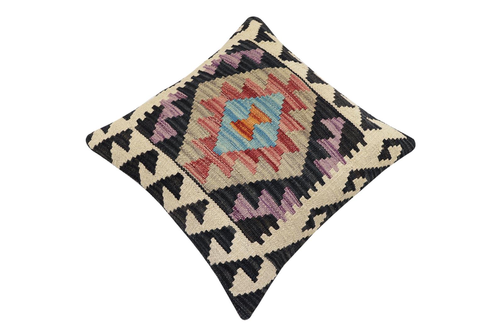 Embellish your home with this timeless casual chic handmade Southwestern Kilim throw pillow covers made with wool and cotton. Constructed on a loom by Nomad Turkman people with hand-spun wool and Natural Vegetable dyes these beautiful Kilim pillow covers are known for their beautiful repetitive geometrical, naturalistic floral, and traditional patterns yet still giving it a modern look. Masterfully artisan-crafted on traditional Kilim looms with a contemporary fashion palette producing bold intricate sharp patterns making them a standout piece in any decor.