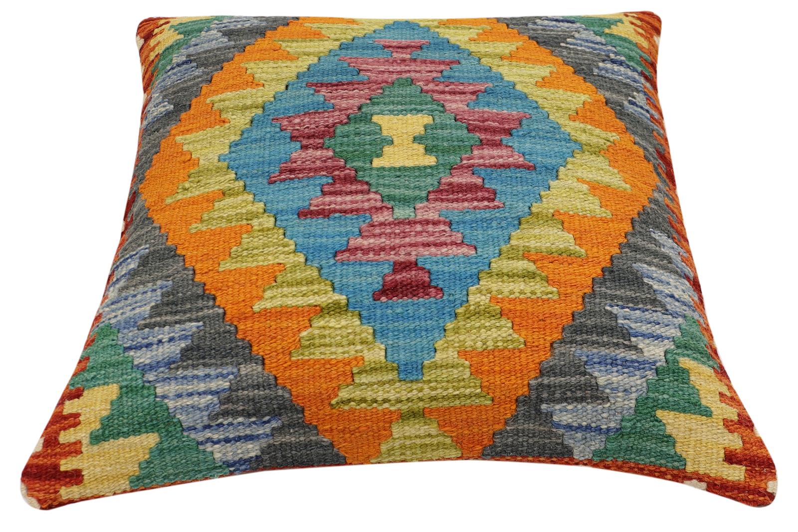 Embellish your home with this timeless casual chic handmade Southwestern Kilim throw pillow covers made with wool and cotton. Constructed on a loom by Nomad Turkman people with hand-spun wool and Natural Vegetable dyes these beautiful Kilim pillow covers are known for their beautiful repetitive geometrical, naturalistic floral, and traditional patterns yet still giving it a modern look. Masterfully artisan-crafted on traditional Kilim looms with a contemporary fashion palette producing bold intricate sharp patterns making them a standout piece in any decor.
