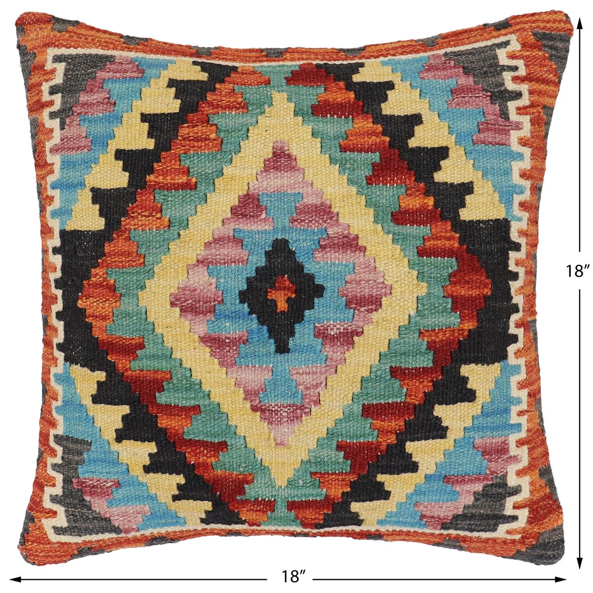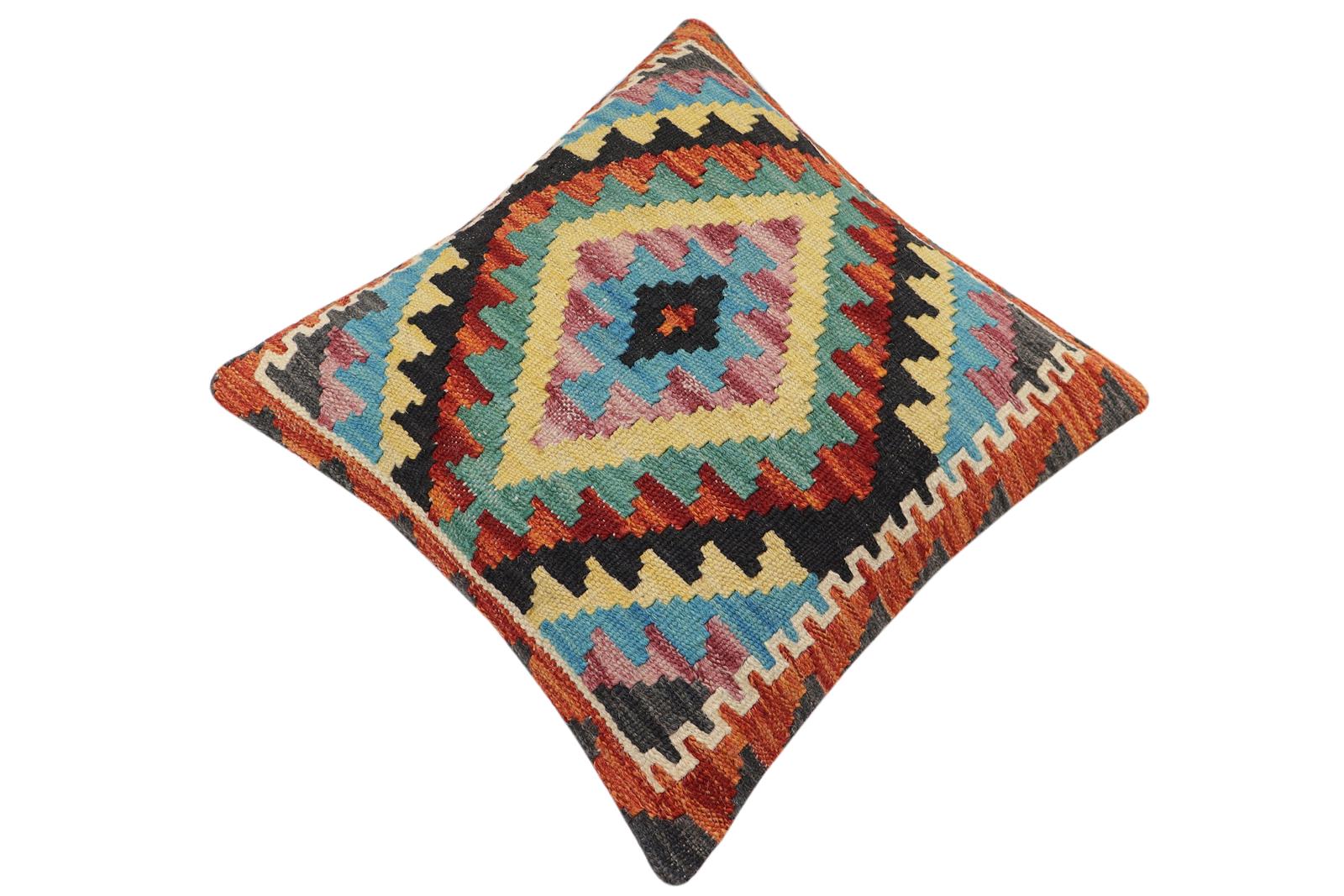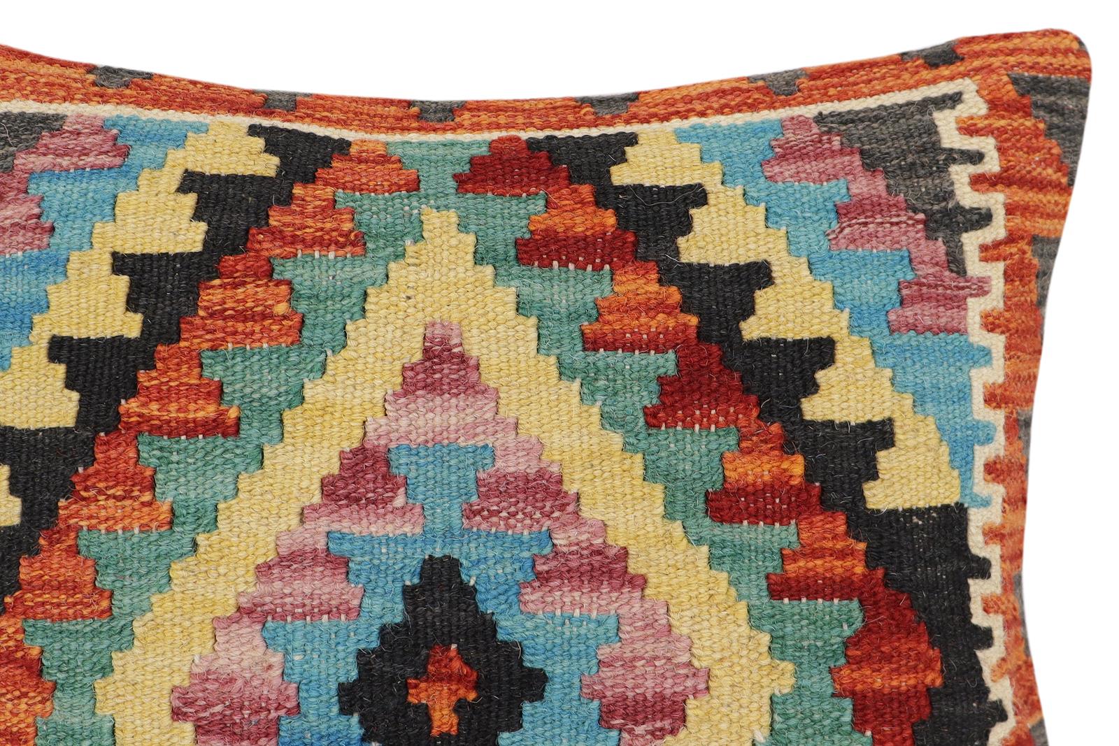 Embellish your home with this timeless casual chic handmade Southwestern Kilim throw pillow covers made with wool and cotton. Constructed on a loom by Nomad Turkman people with hand-spun wool and Natural Vegetable dyes these beautiful Kilim pillow covers are known for their beautiful repetitive geometrical, naturalistic floral, and traditional patterns yet still giving it a modern look. Masterfully artisan-crafted on traditional Kilim looms with a contemporary fashion palette producing bold intricate sharp patterns making them a standout piece in any decor.