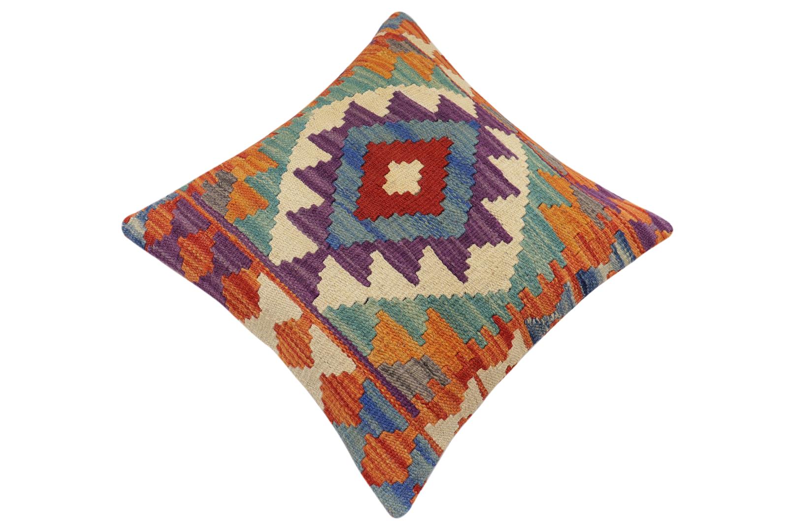 Embellish your home with this timeless casual chic handmade Southwestern Kilim throw pillow covers made with wool and cotton. Constructed on a loom by Nomad Turkman people with hand-spun wool and Natural Vegetable dyes these beautiful Kilim pillow covers are known for their beautiful repetitive geometrical, naturalistic floral, and traditional patterns yet still giving it a modern look. Masterfully artisan-crafted on traditional Kilim looms with a contemporary fashion palette producing bold intricate sharp patterns making them a standout piece in any decor.