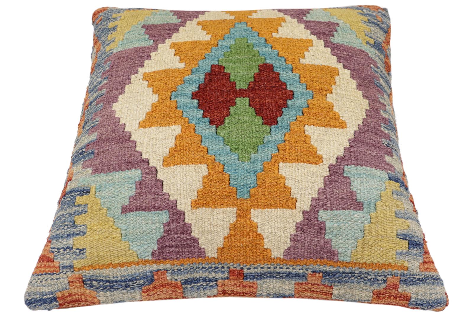 Embellish your home with this timeless casual chic handmade Southwestern Kilim throw pillow covers made with wool and cotton. Constructed on a loom by Nomad Turkman people with hand-spun wool and Natural Vegetable dyes these beautiful Kilim pillow covers are known for their beautiful repetitive geometrical, naturalistic floral, and traditional patterns yet still giving it a modern look. Masterfully artisan-crafted on traditional Kilim looms with a contemporary fashion palette producing bold intricate sharp patterns making them a standout piece in any decor.