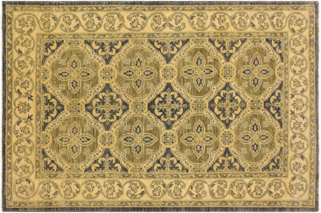 Shabby Chic Ziegler Maudie Bluish Gray Tan Hand-Knotted Wool Rug - 4'1'' x 6'0''