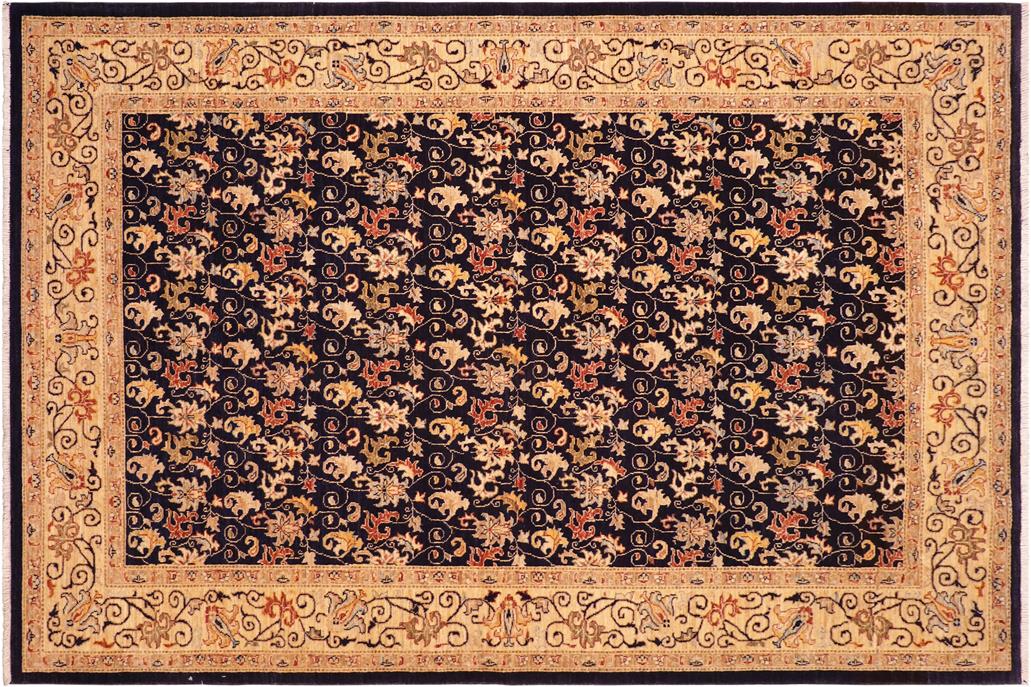 Shabby Chic Ziegler Brunilda Blue Beige Hand-Knotted Wool Rug - 6'3'' x 9'0''