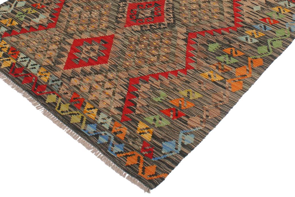 Tribal Turkish Kilim Osvaldo  Hand-Woven Wool Rug - 4'0'' x 5'9''