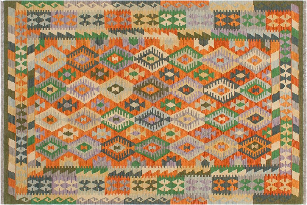 Tribal Turkish Kilim Nigel  Hand-Woven Wool Rug - 5'1'' x 6'5''