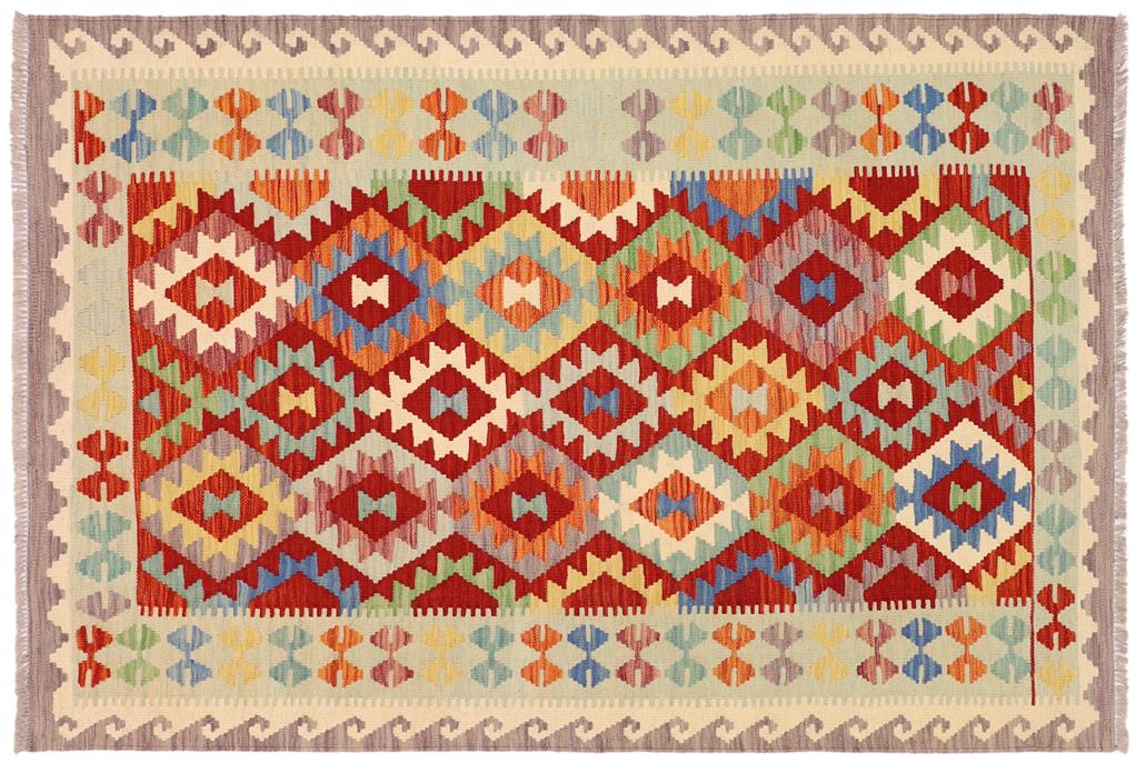 Southwestern Turkish Kilim Diamond Hand-Woven Wool Rug - 4'3'' x 6'0''