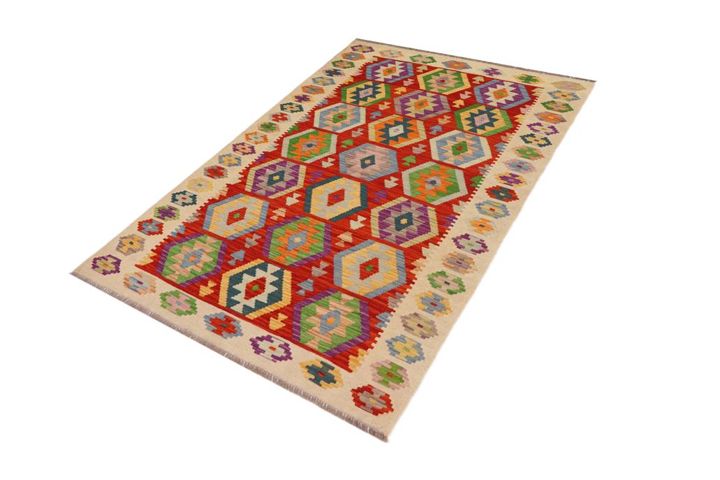 Tribal Turkish Kilim Ricardo Hand-Woven Wool Rug - 4'1'' x 6'1''
