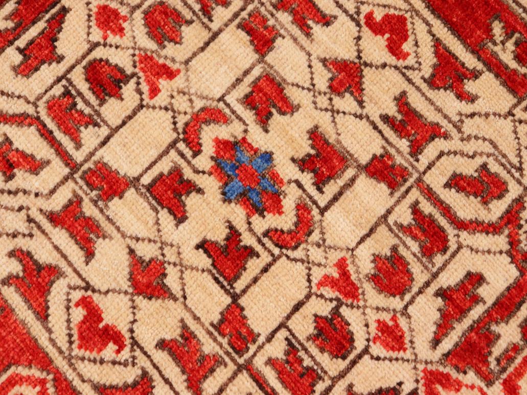 With strict standards of craftsmanship and quality of materials used this magnificent hand-knotted rug features a Mamluk design characterized by their unique weave and fine quality wool. Made for the Sultans in the 15th Century, Mamluk hand-knotted rugs devour design and structural characteristics that are based on a unique interplay of geometric forms with beauteous medallions made up of intersecting compartments and subtle layering making it a masterpiece of its own. This magnificent rug made with handspun wool and natural dyes features soft and lustrous, almost silk-like wool which gives it an elegant royal look. The breath-taking color pallet with an intricate geometric Mamluk design brings a rich form of cultural art to any decor. The unique hand-knotted rug narrates an archival story of the Mamluk Sultans and the Ottoman Empire bringing a rich sense of history, elegance, and sophistication in any decor.
